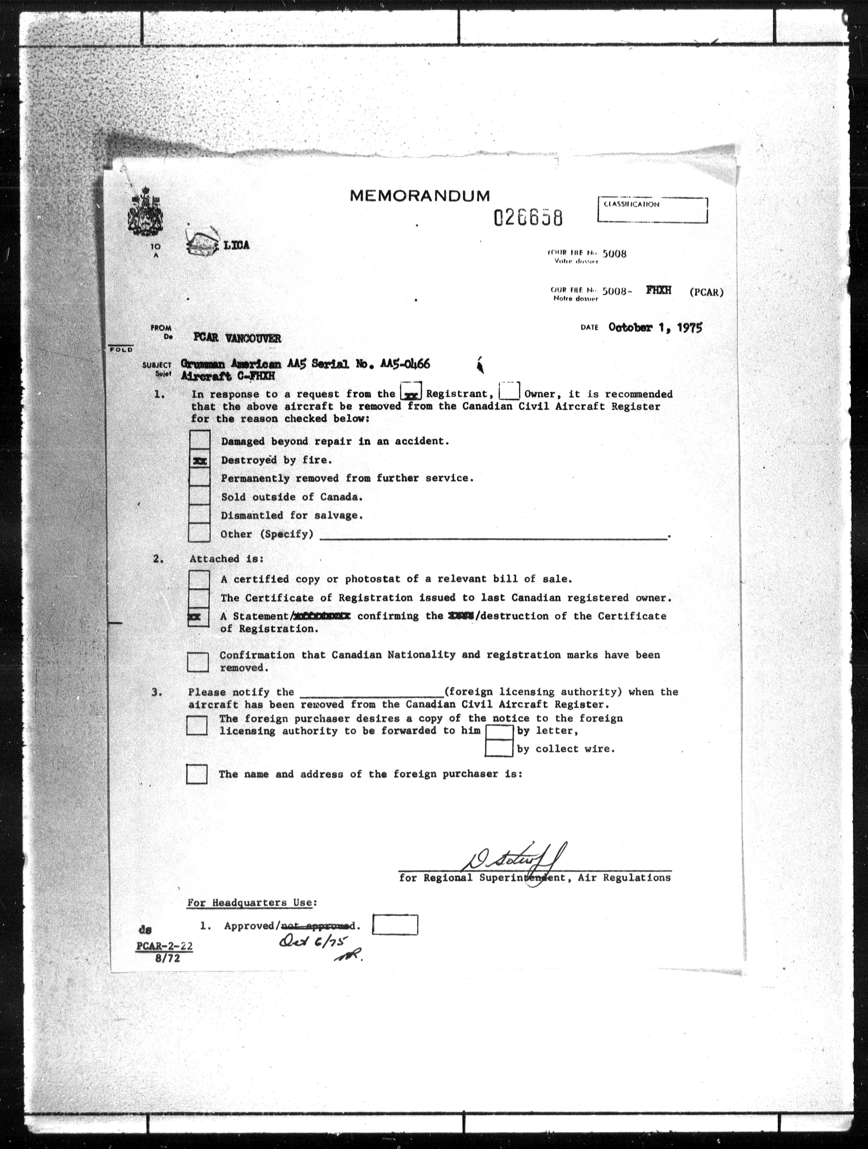 Department of Transport : Civil aircraft registration, inspection and operation files, block 5008, 1920-1986 - 7783
