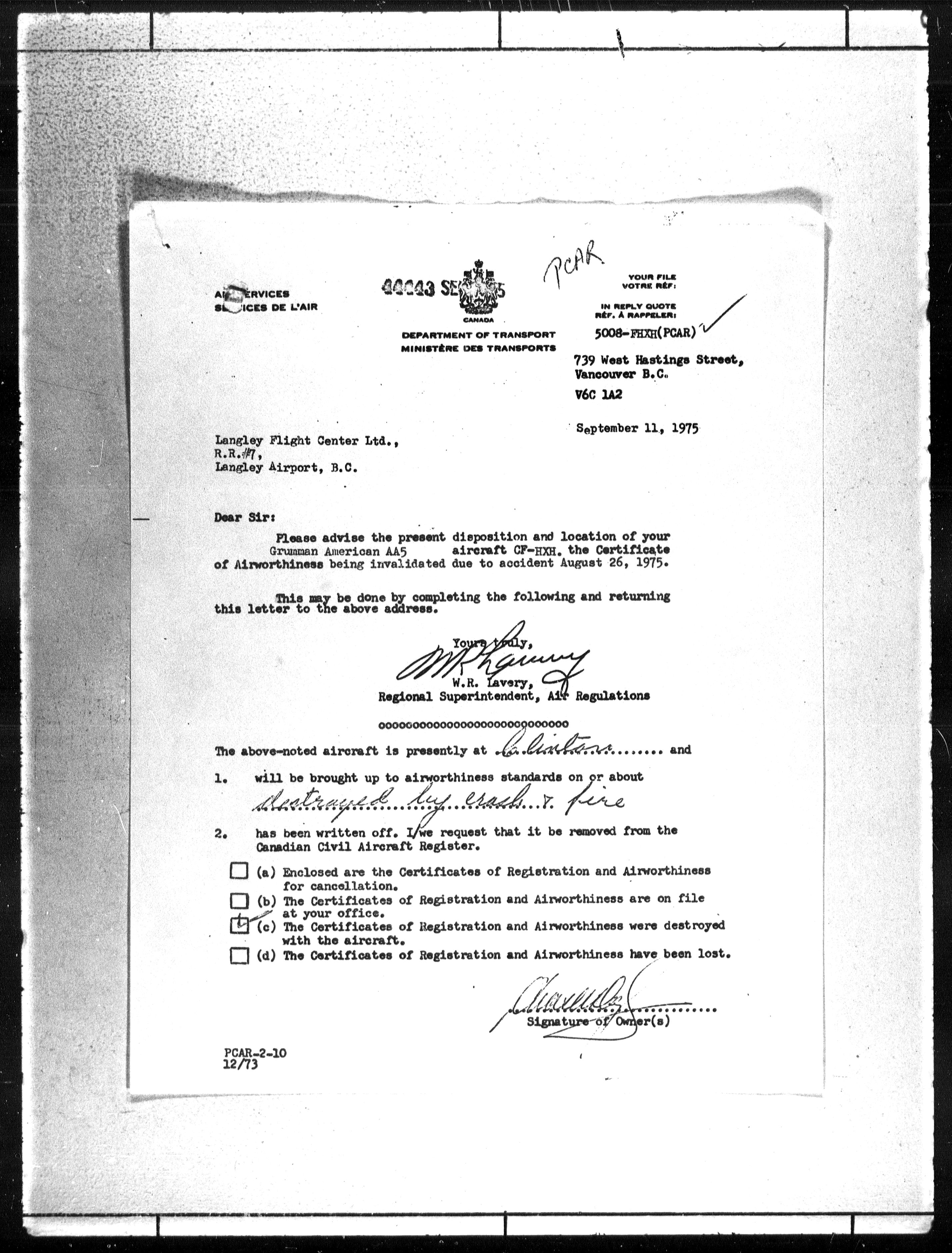 Department of Transport : Civil aircraft registration, inspection and operation files, block 5008, 1920-1986 - 7783