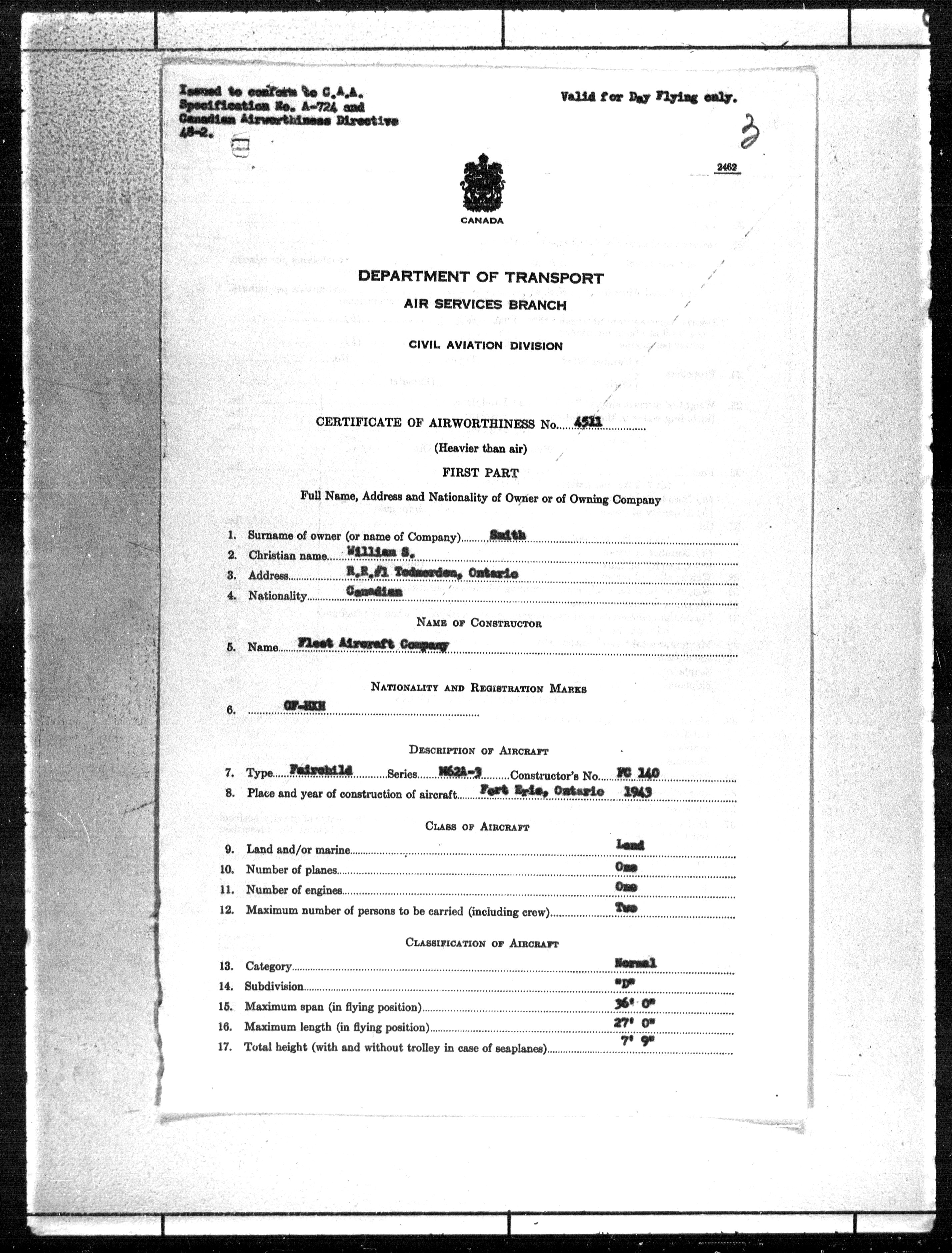 Department of Transport : Civil aircraft registration, inspection and operation files, 1920-1986 : T-7783
