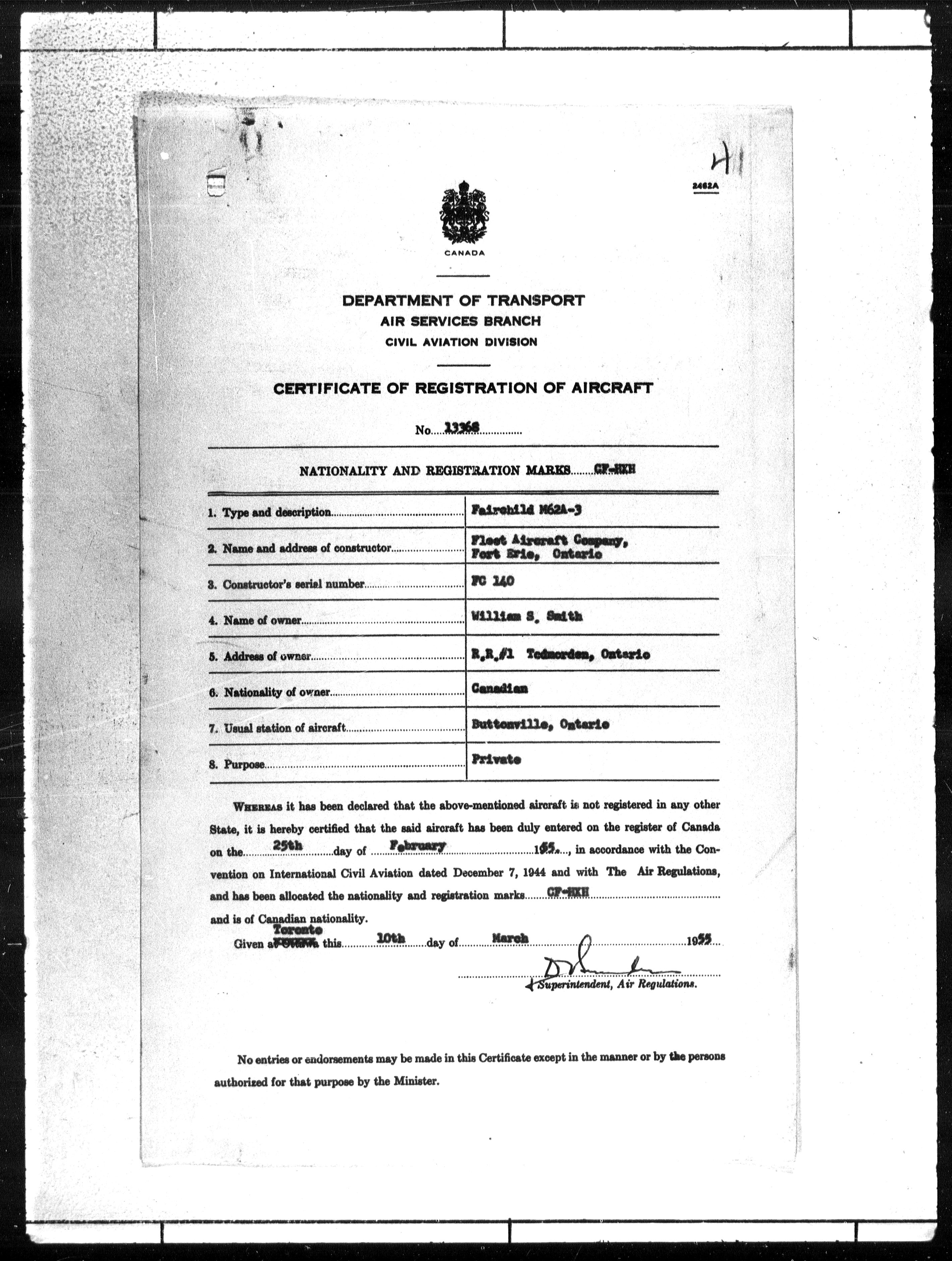 Department of Transport : Civil aircraft registration, inspection and operation files, 1920-1986 : T-7783