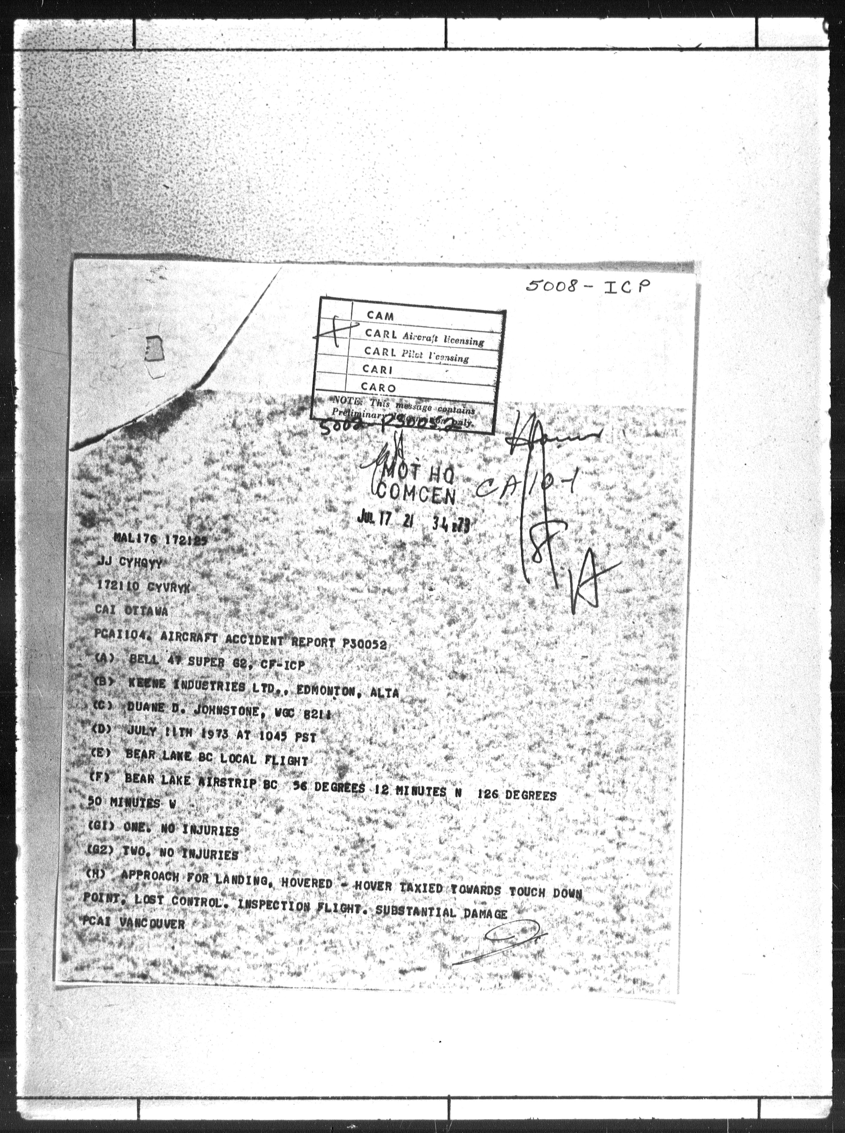 Department of Transport : Civil aircraft registration, inspection and operation files, block 5008, 1920-1986 - 7784