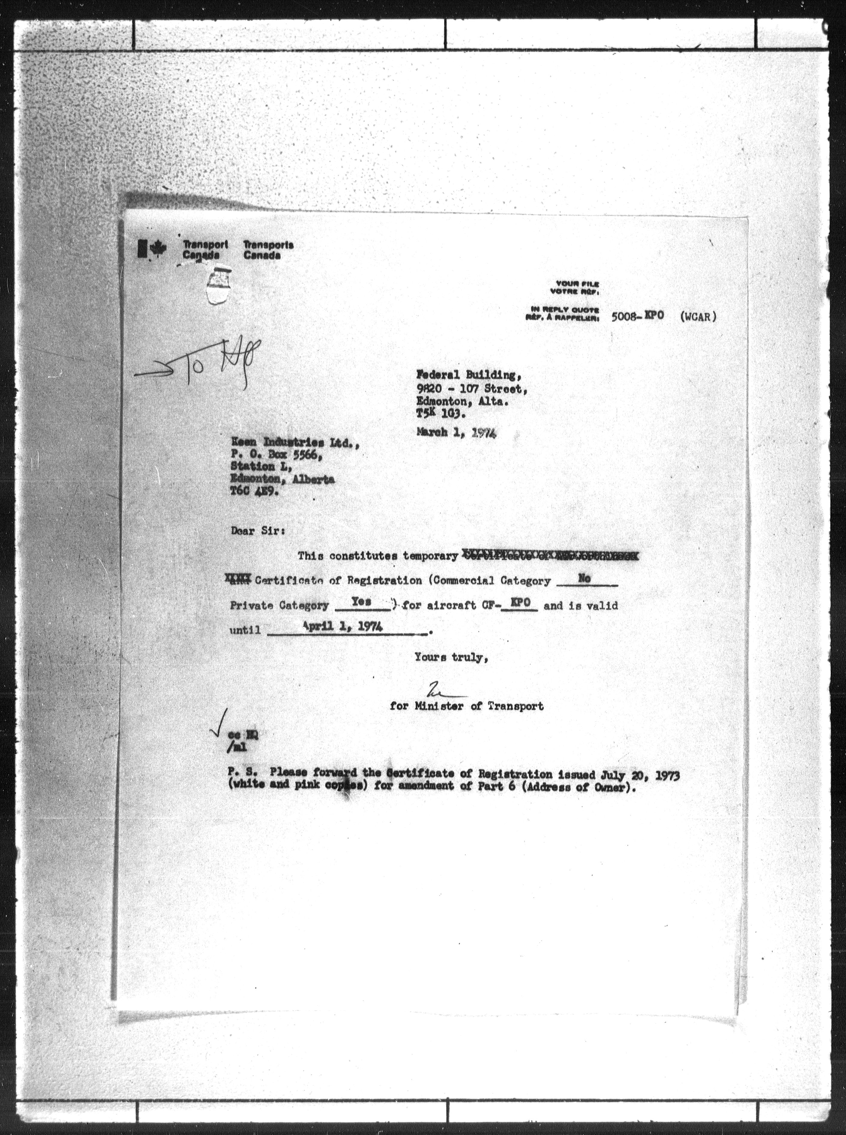 Department of Transport : Civil aircraft registration, inspection and operation files, block 5008, 1920-1986 - 7784