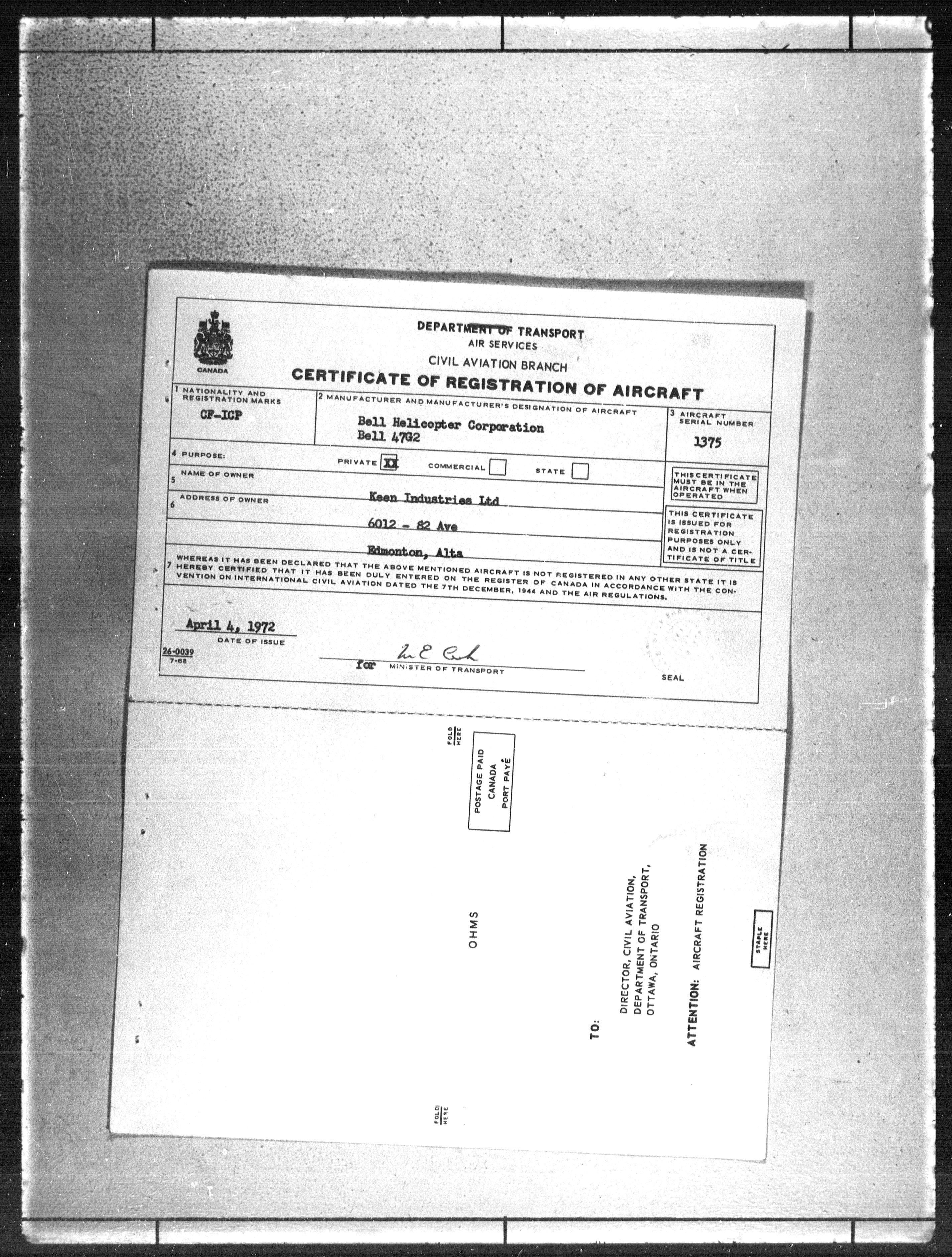 Department of Transport : Civil aircraft registration, inspection and operation files, block 5008, 1920-1986 - 7784