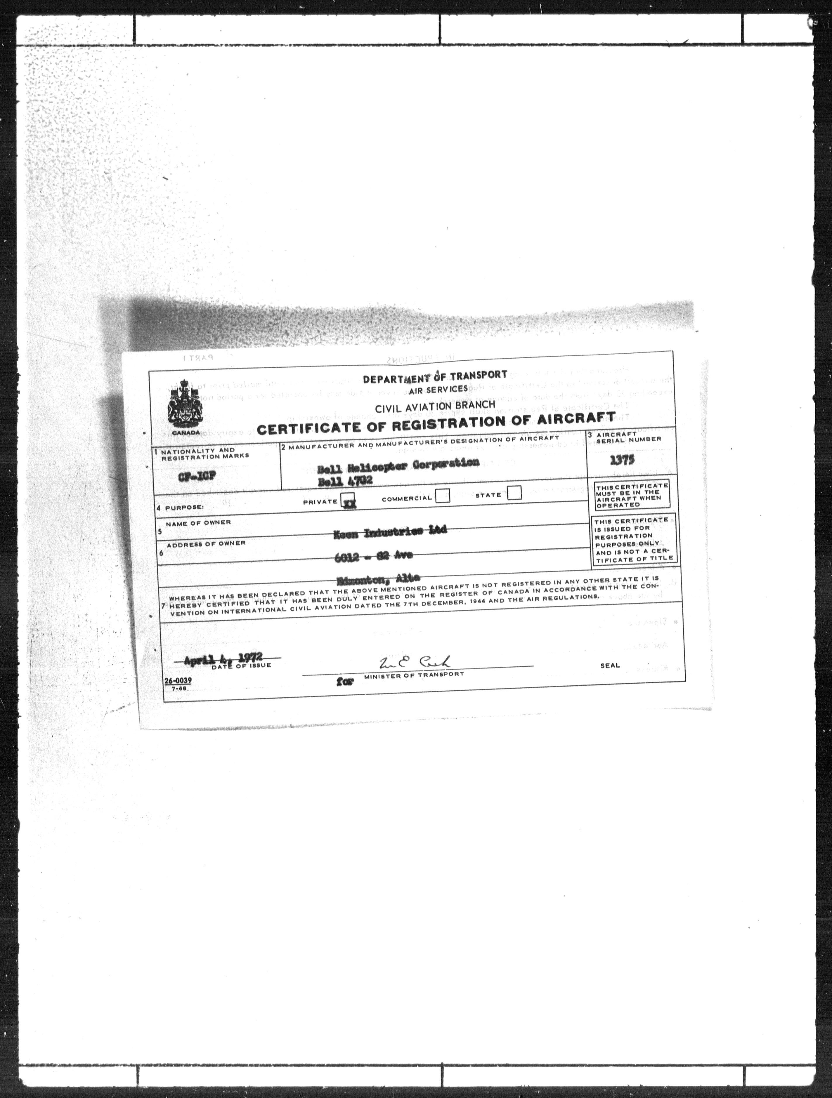 Department of Transport : Civil aircraft registration, inspection and operation files, block 5008, 1920-1986 - 7784