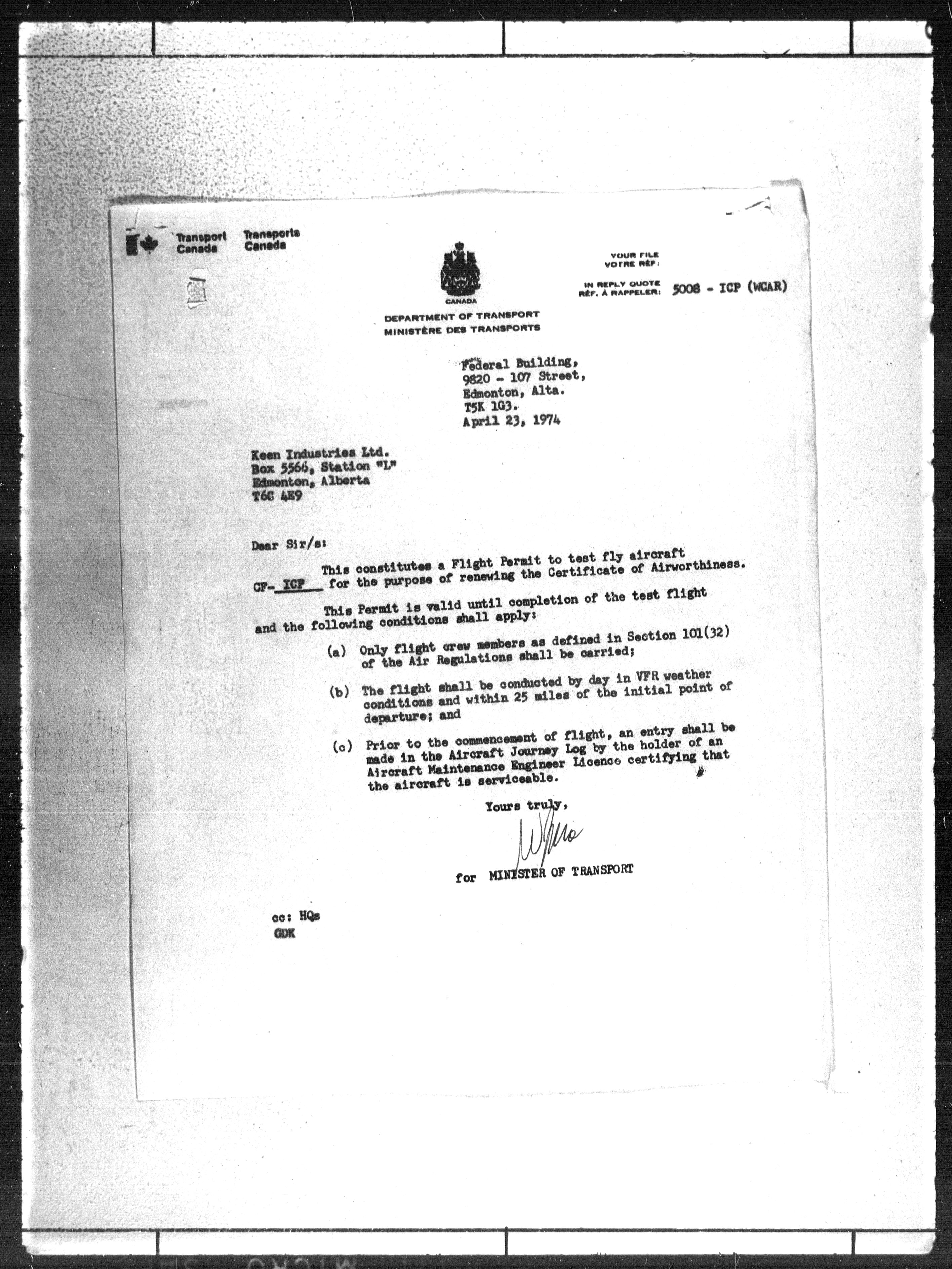 Department of Transport : Civil aircraft registration, inspection and operation files, block 5008, 1920-1986 - 7784
