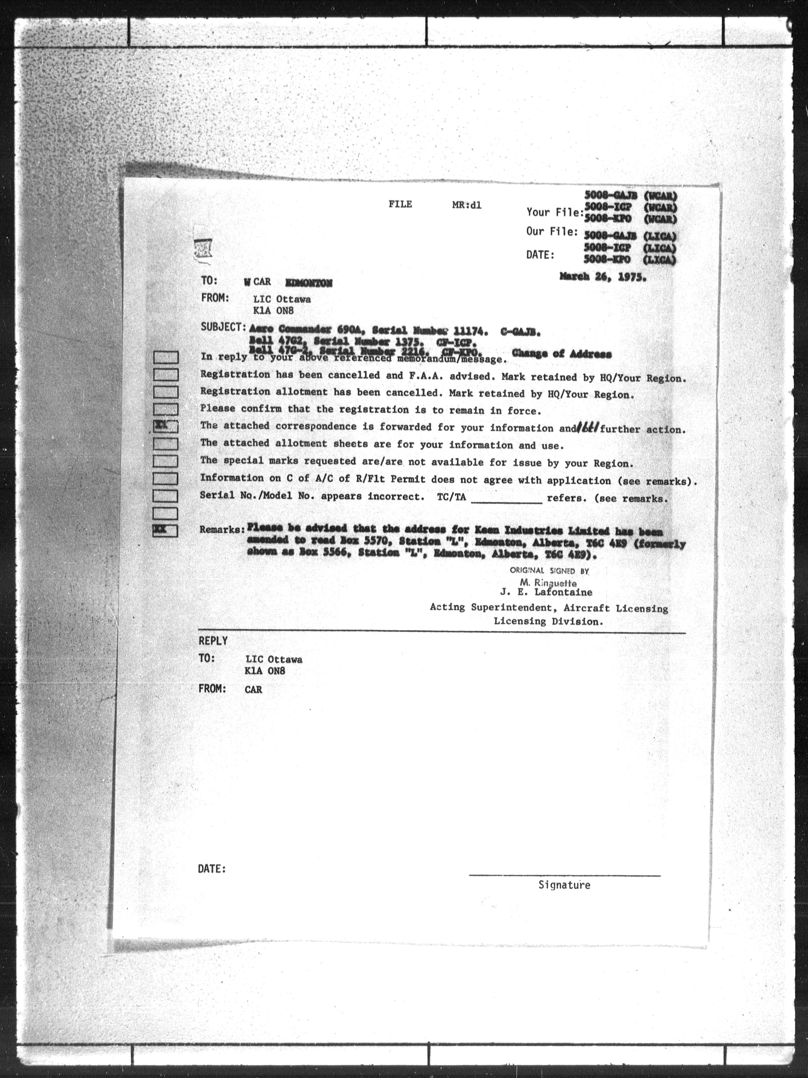 Department of Transport : Civil aircraft registration, inspection and operation files, block 5008, 1920-1986 - 7784