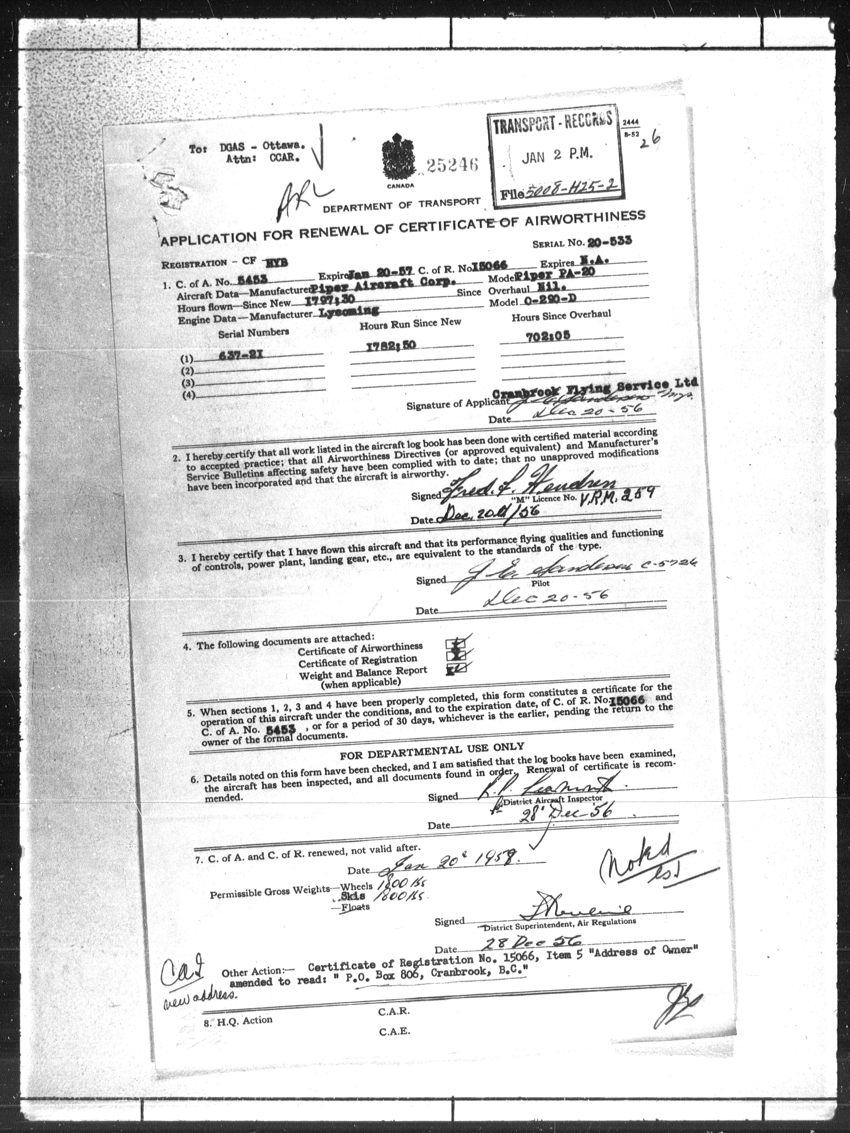 Department of Transport : Civil aircraft registration, inspection and operation files, block 5008, 1920-1986 - 7784