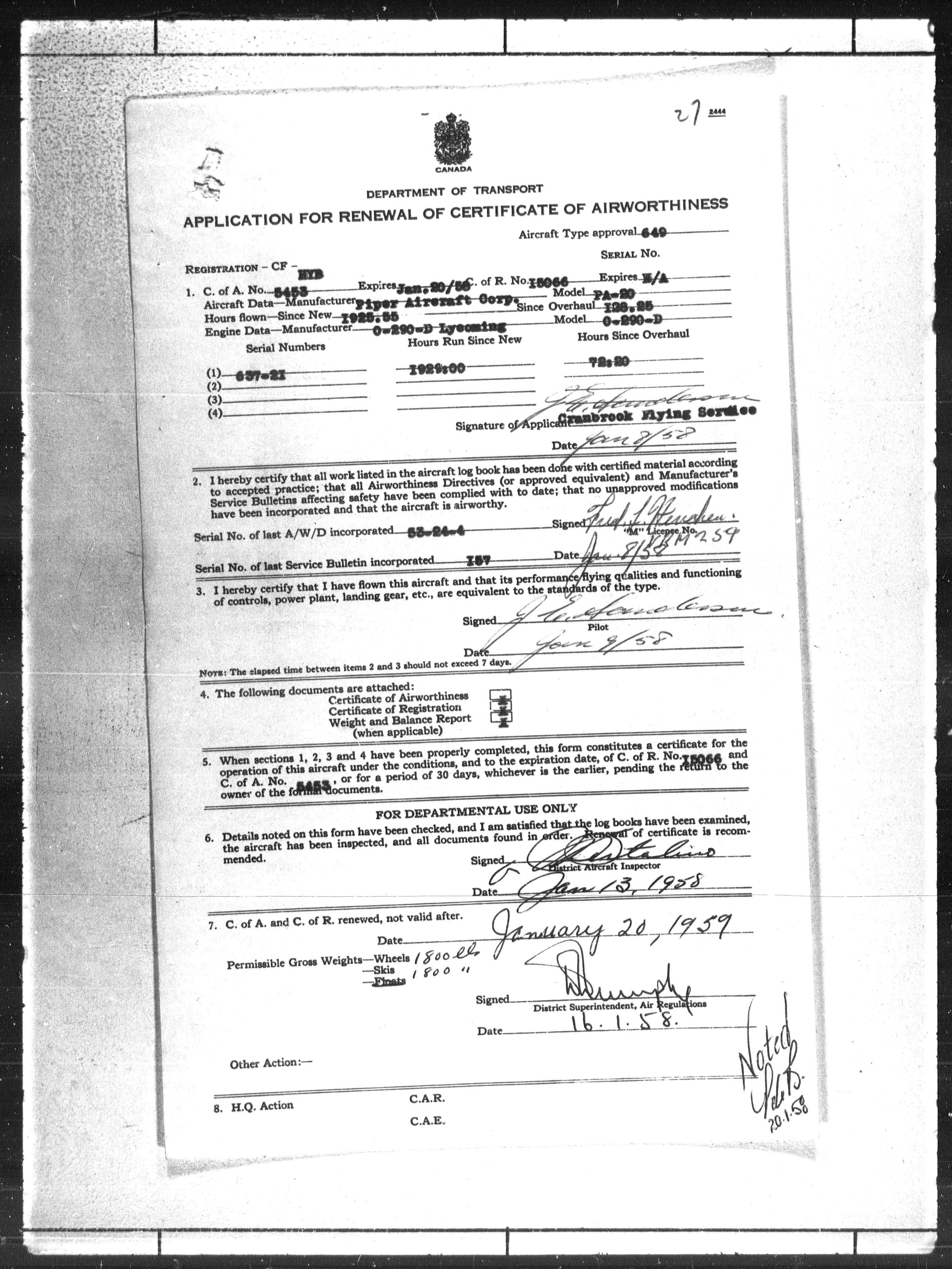 Department of Transport : Civil aircraft registration, inspection and operation files, block 5008, 1920-1986 - 7784