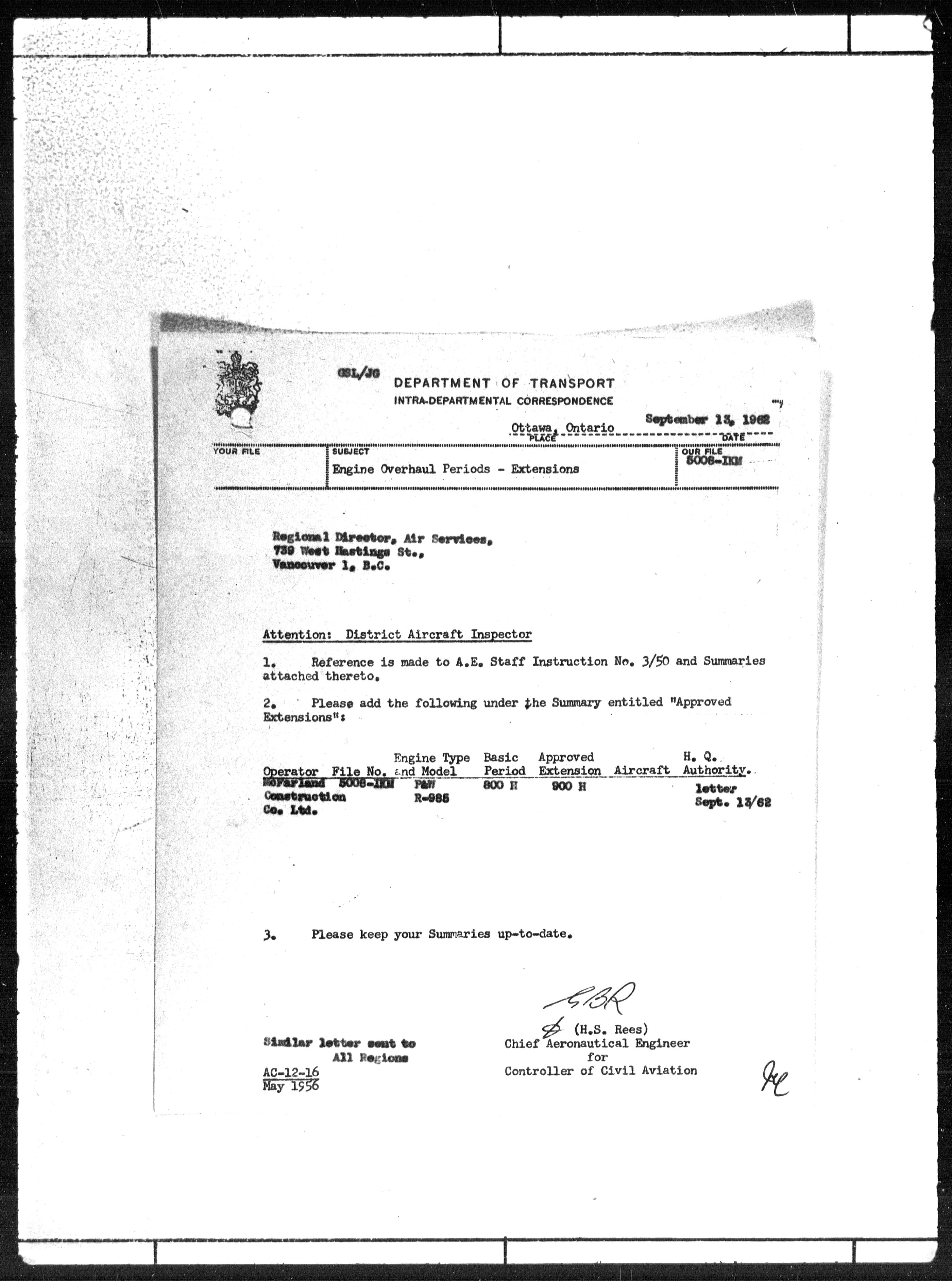 Department of Transport : Civil aircraft registration, inspection and operation files, block 5008, 1920-1986 - 7786