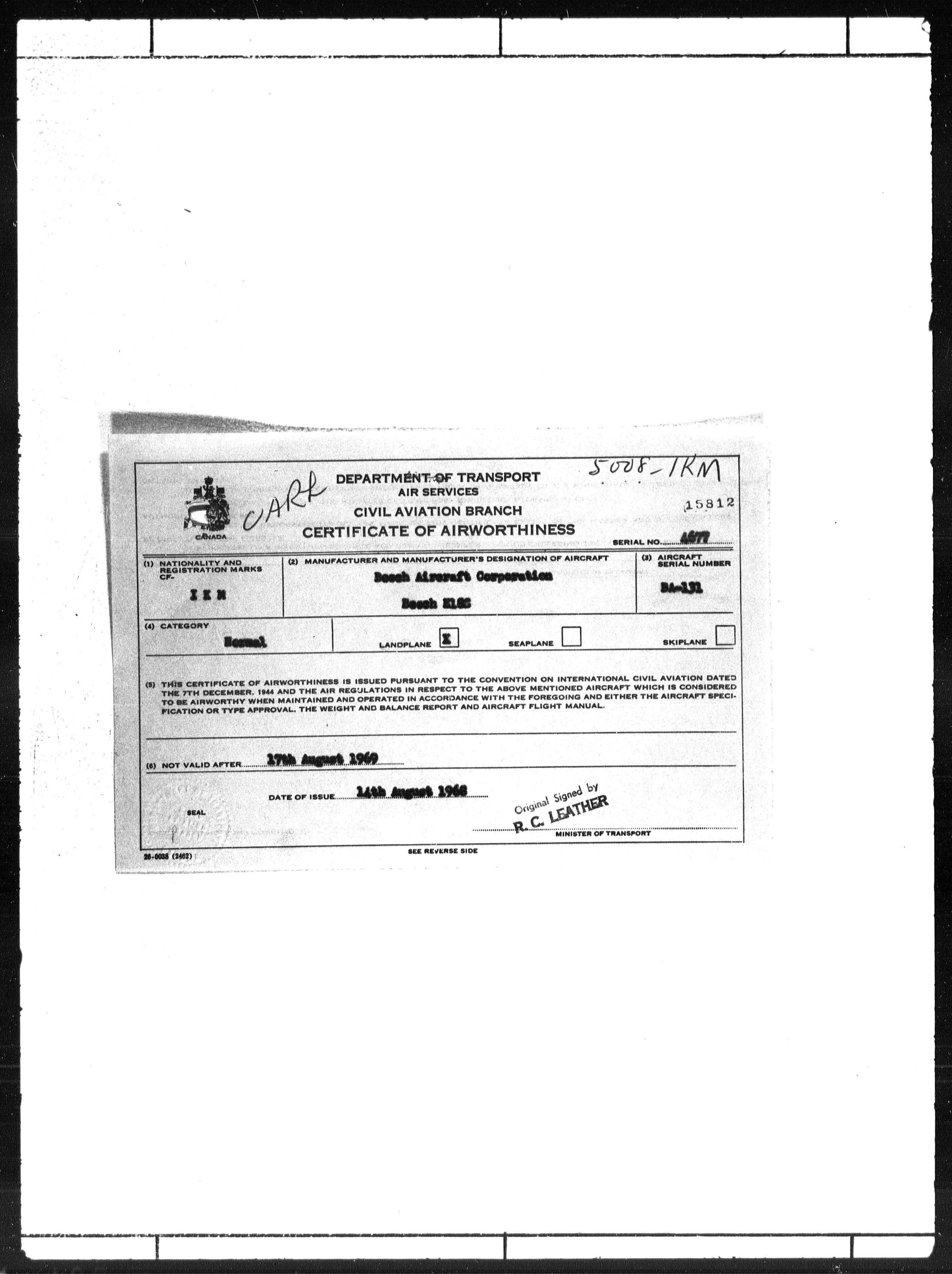 Department of Transport : Civil aircraft registration, inspection and operation files, block 5008, 1920-1986 - 7786