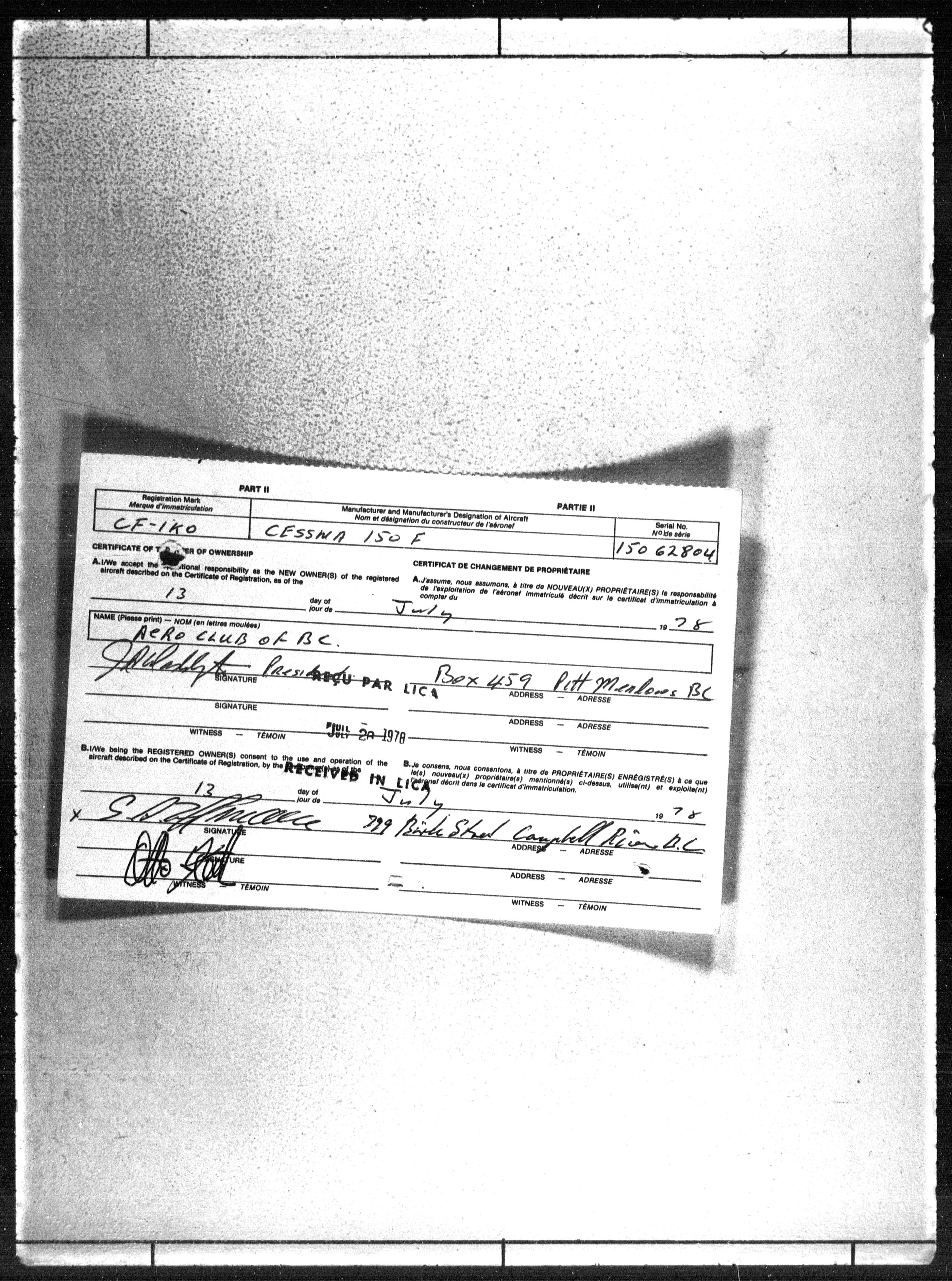 Department of Transport : Civil aircraft registration, inspection and operation files, block 5008, 1920-1986 - 7786