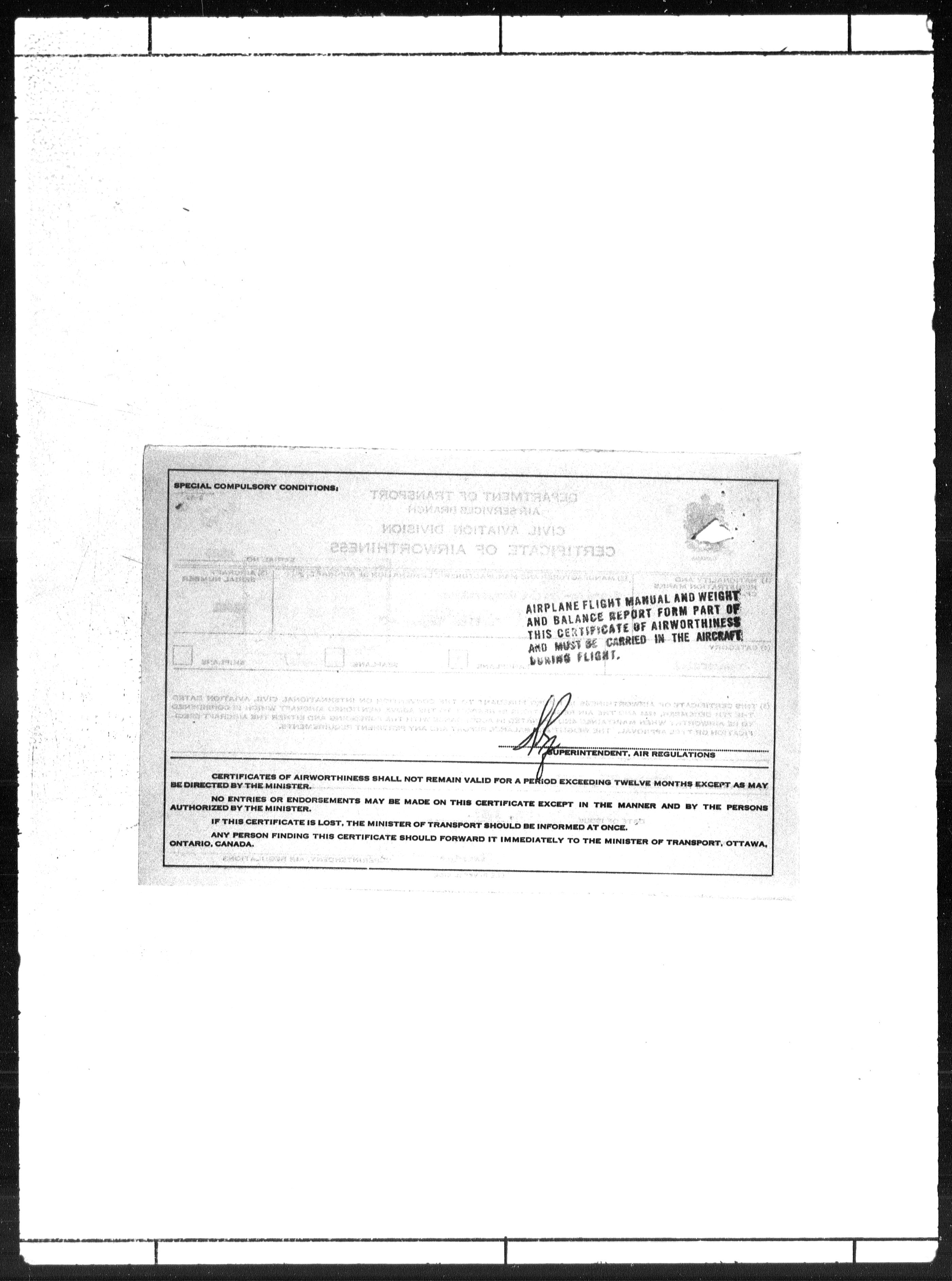 Department of Transport : Civil aircraft registration, inspection and operation files, block 5008, 1920-1986 - 7786