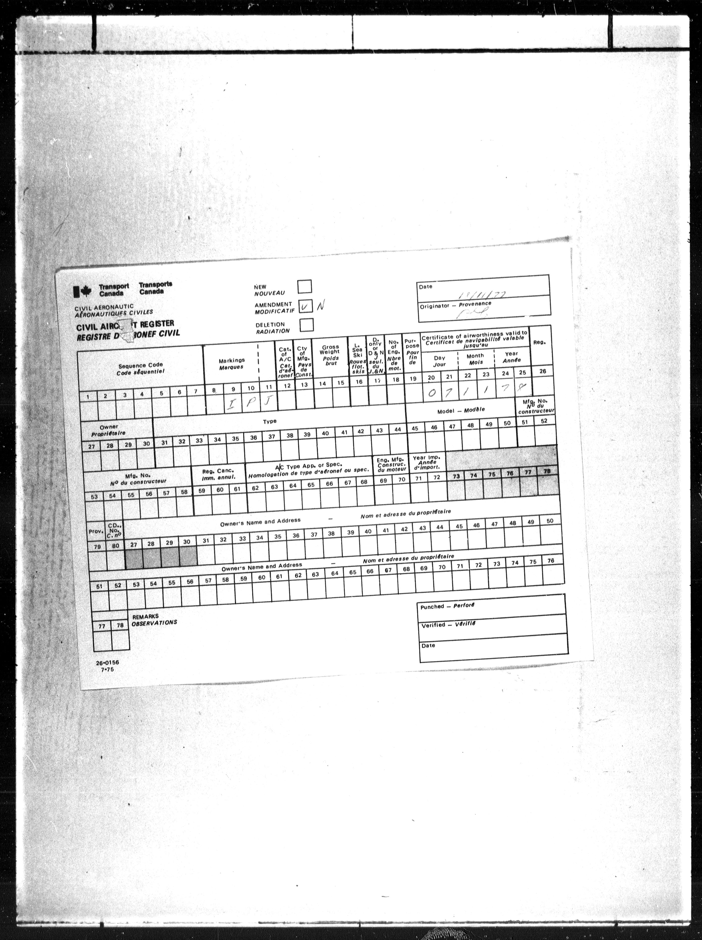 Department of Transport : Civil aircraft registration, inspection and operation files, block 5008, 1920-1986 - 7787