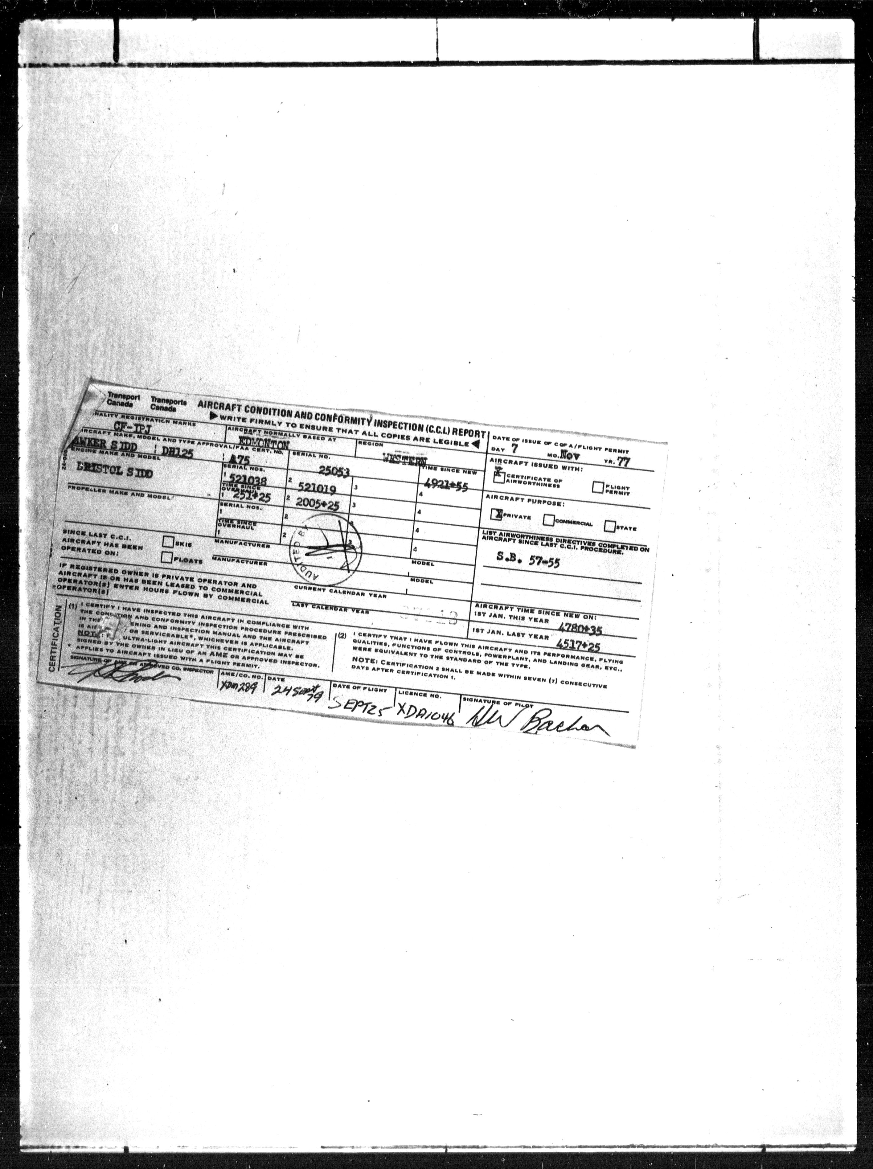 Department of Transport : Civil aircraft registration, inspection and operation files, block 5008, 1920-1986 - 7787