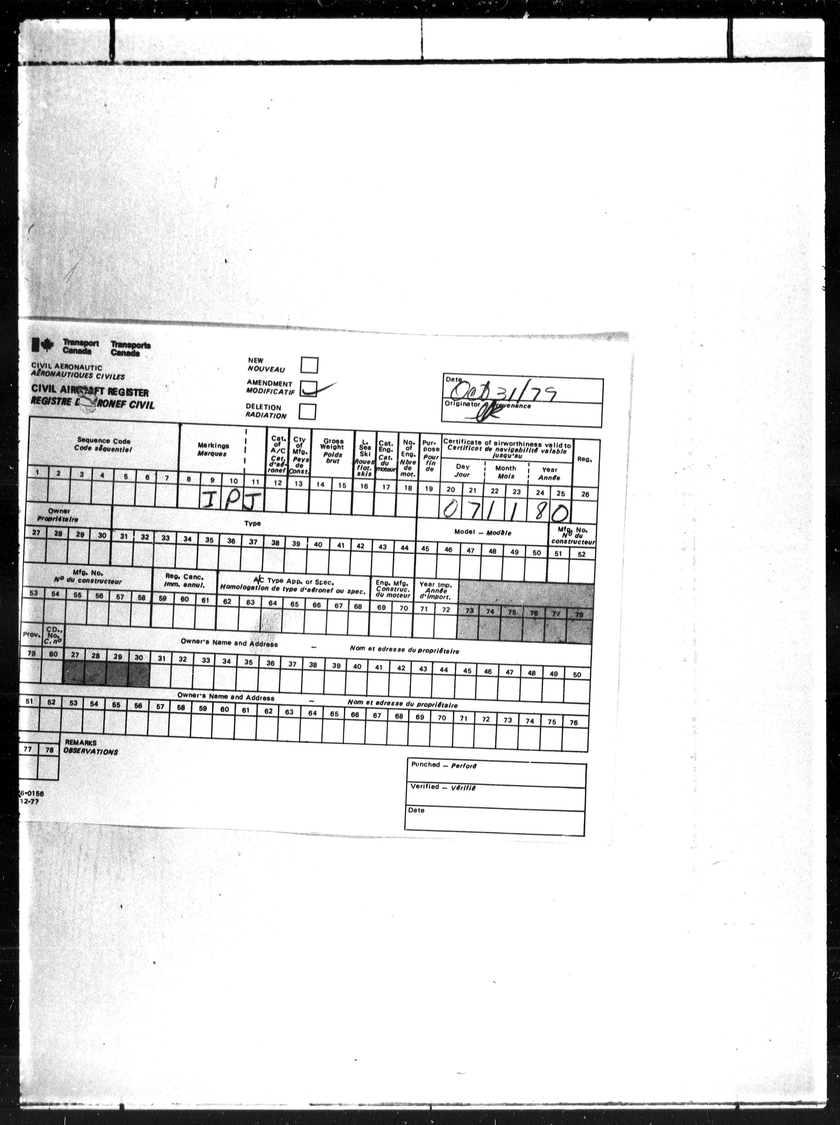 Department of Transport : Civil aircraft registration, inspection and operation files, block 5008, 1920-1986 - 7787