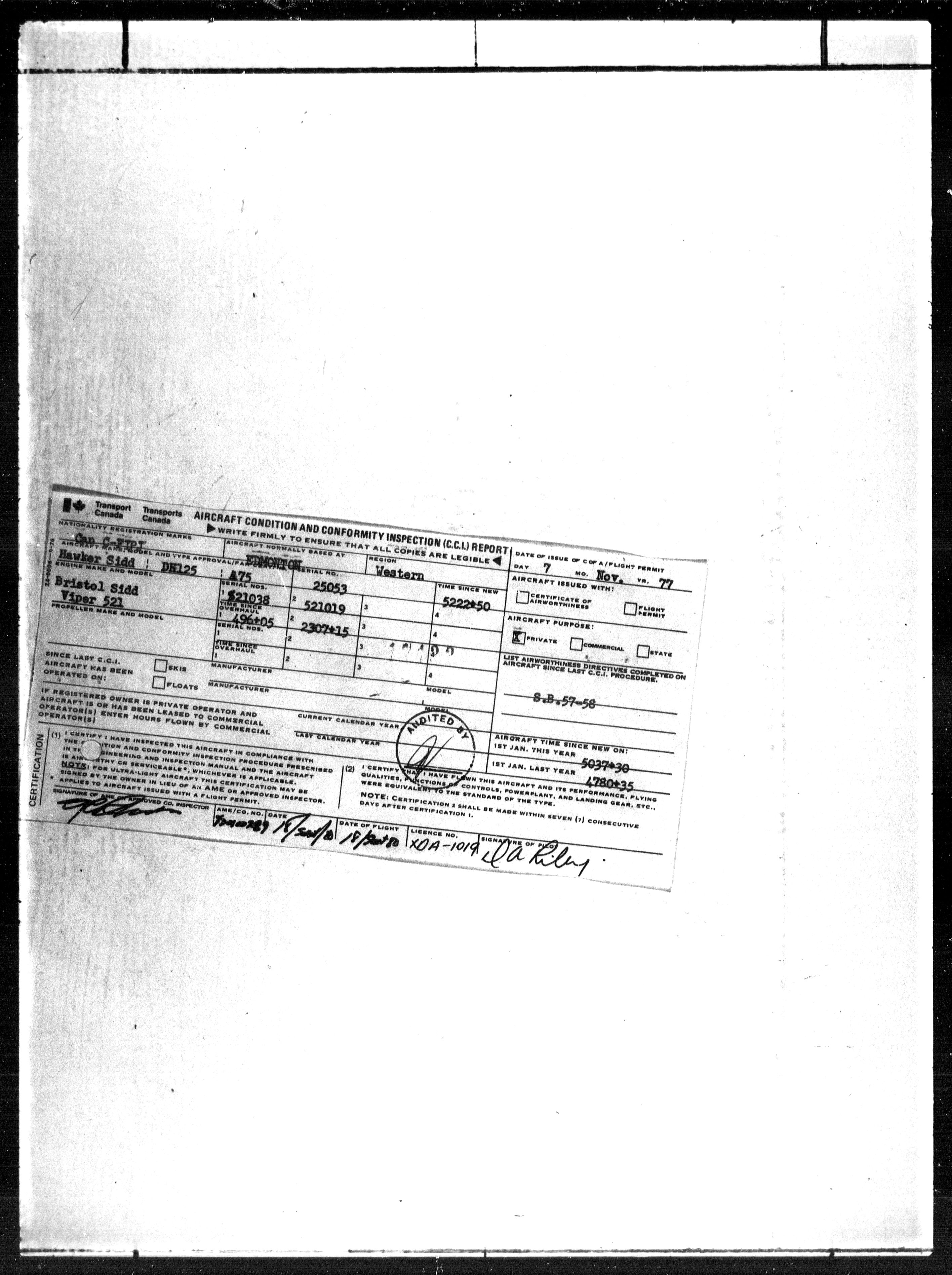 Department of Transport : Civil aircraft registration, inspection and operation files, block 5008, 1920-1986 - 7787