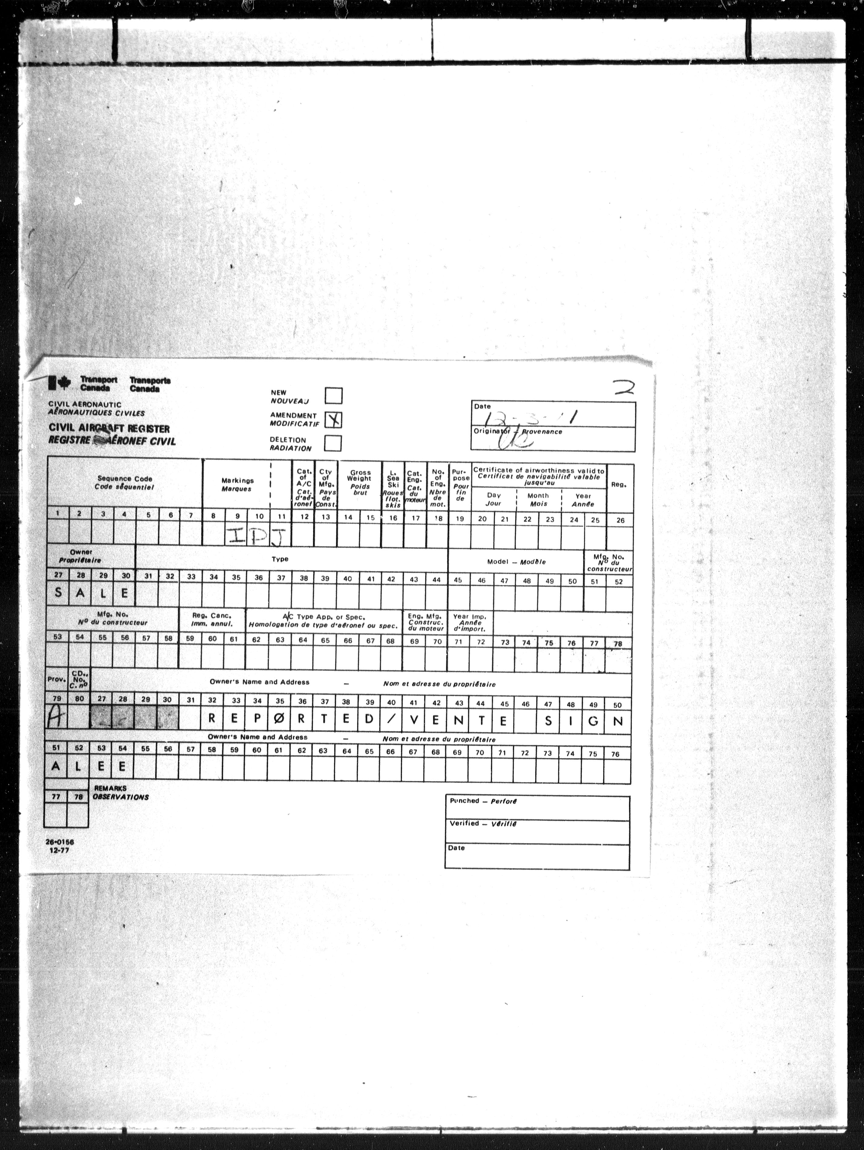 Department of Transport : Civil aircraft registration, inspection and operation files, block 5008, 1920-1986 - 7787