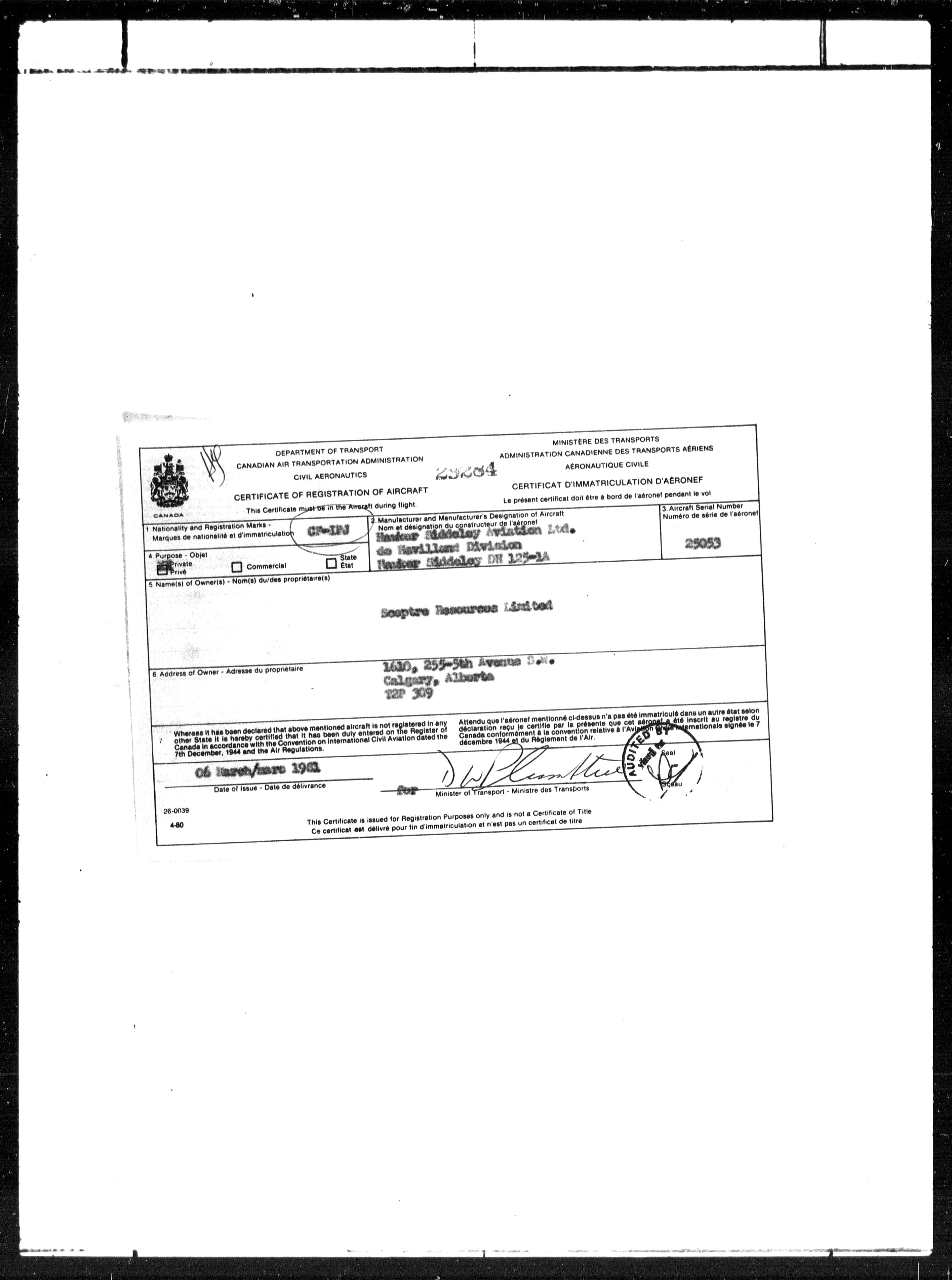 Department of Transport : Civil aircraft registration, inspection and operation files, block 5008, 1920-1986 - 7787