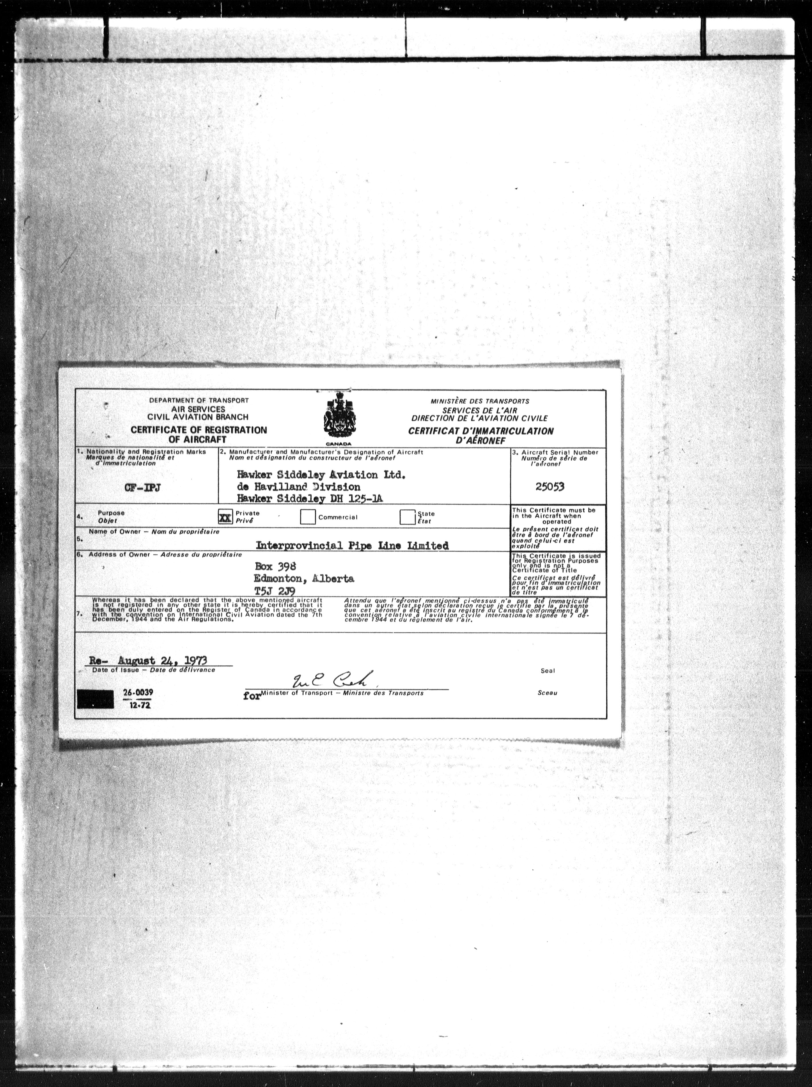Department of Transport : Civil aircraft registration, inspection and operation files, block 5008, 1920-1986 - 7787