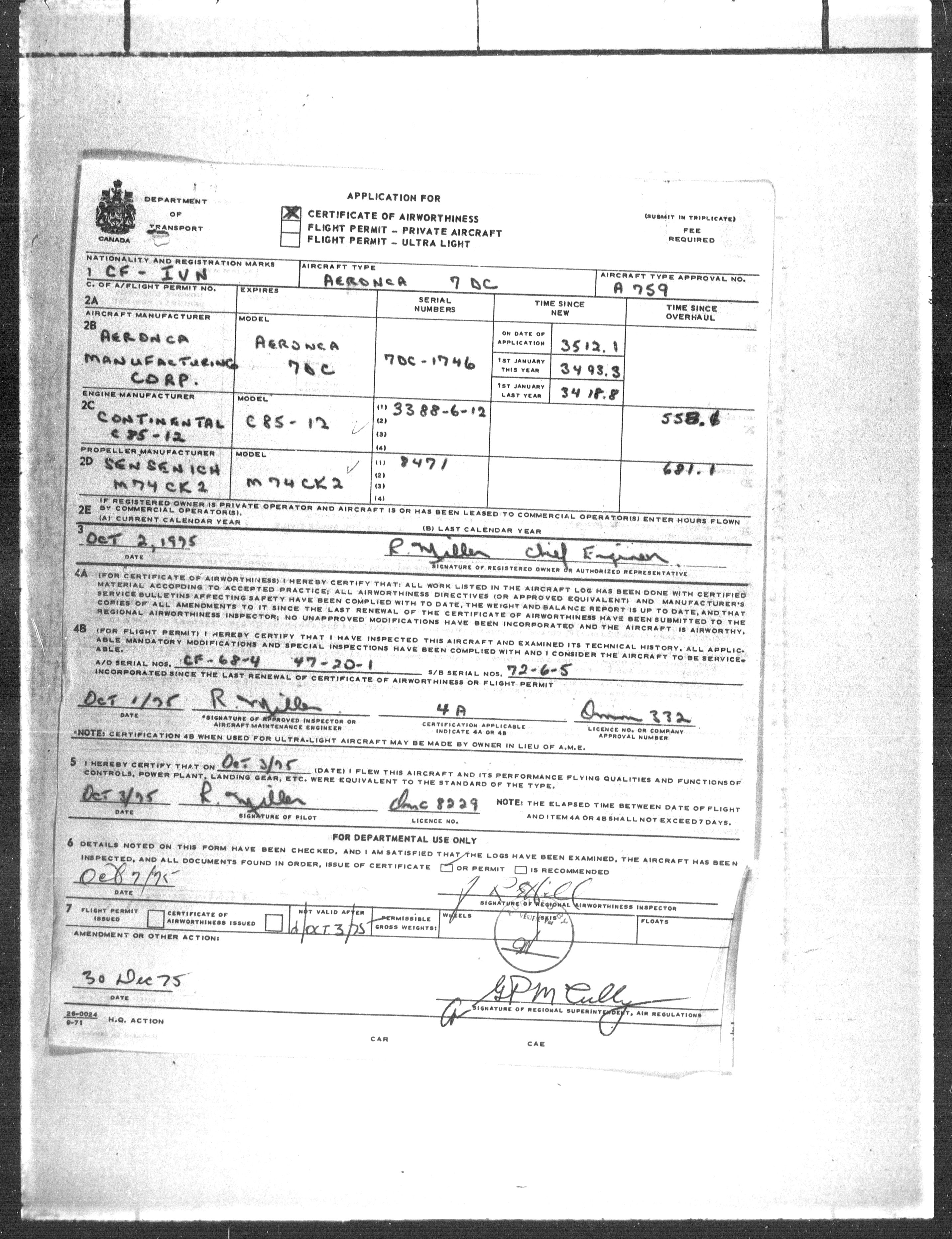 Department of Transport : Civil aircraft registration, inspection and operation files, block 5008, 1920-1986 - 7788