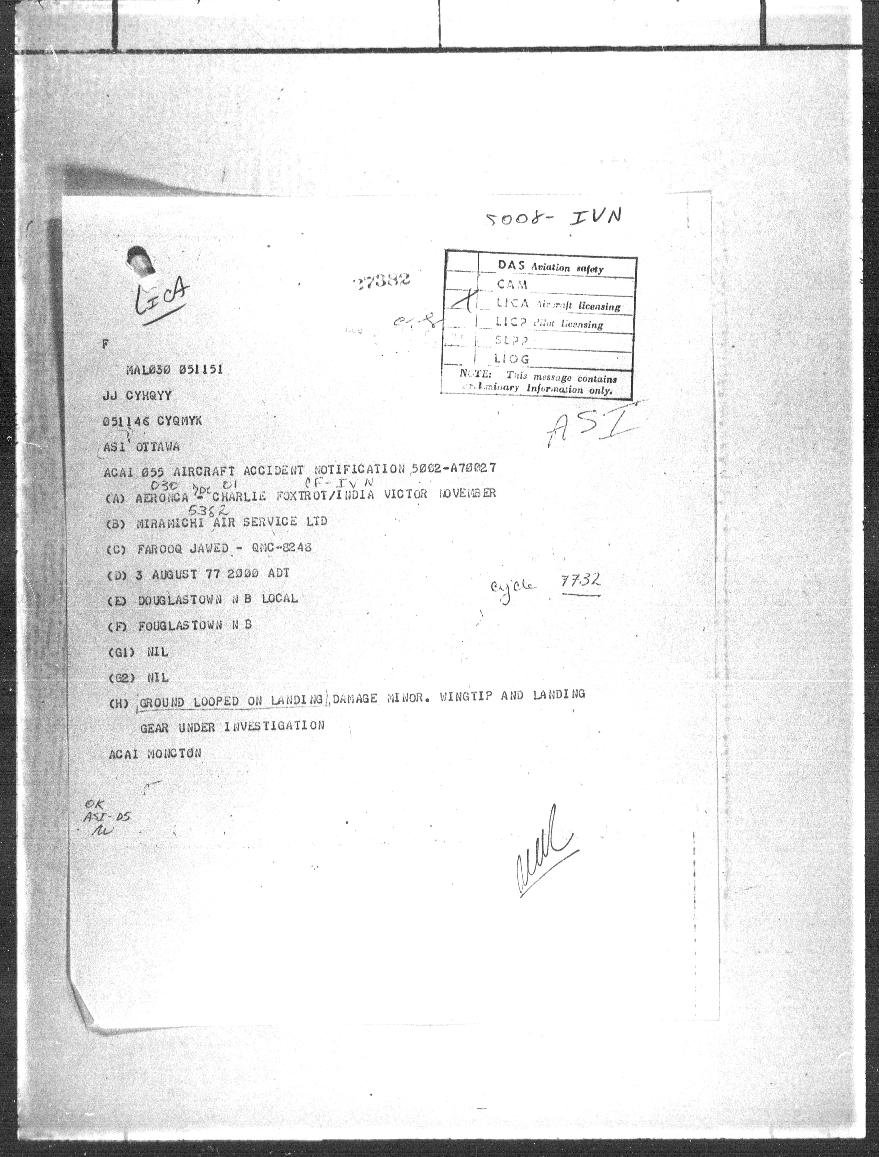 Department of Transport : Civil aircraft registration, inspection and operation files, block 5008, 1920-1986 - 7788