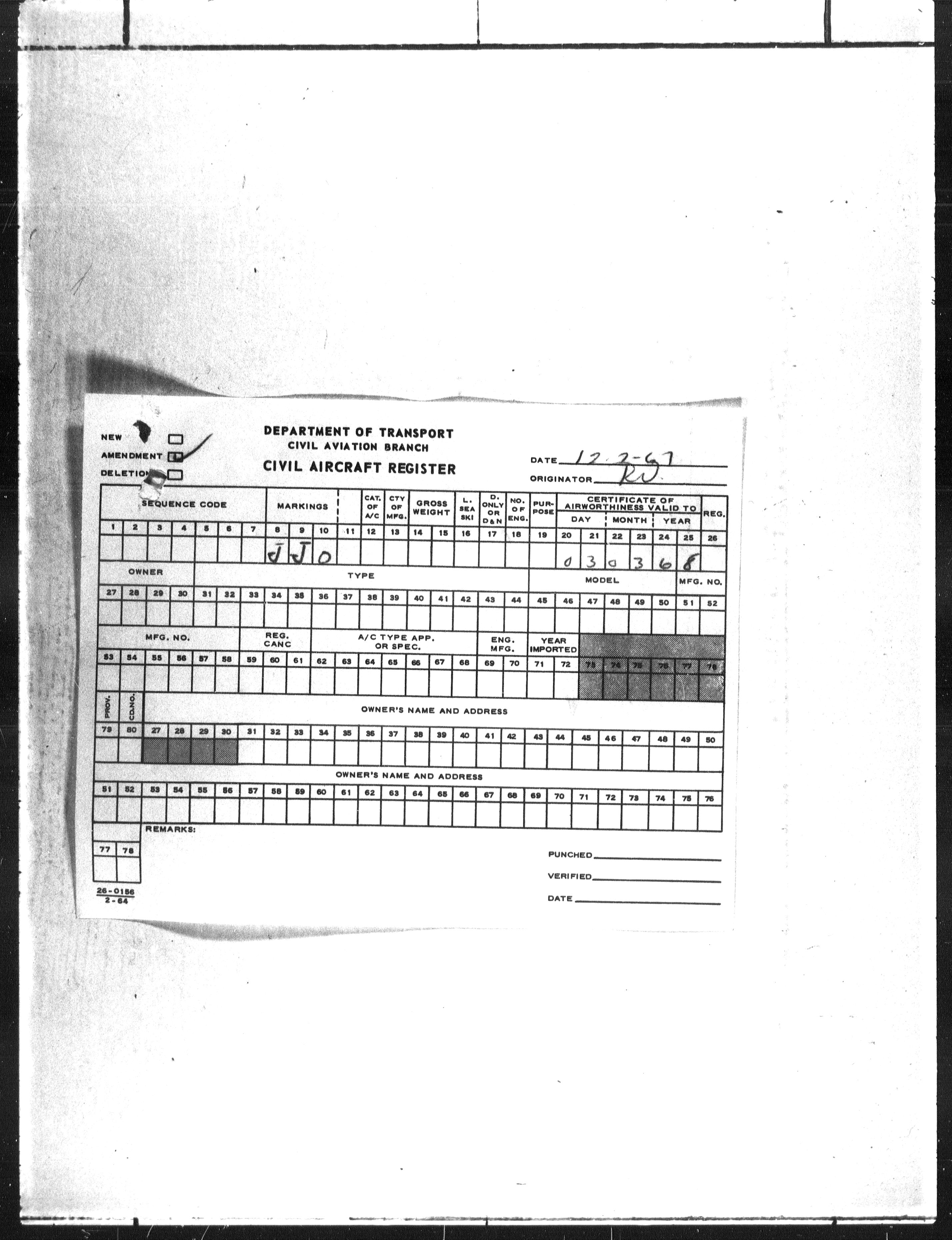 Department of Transport : Civil aircraft registration, inspection and operation files, block 5008, 1920-1986 - 7790