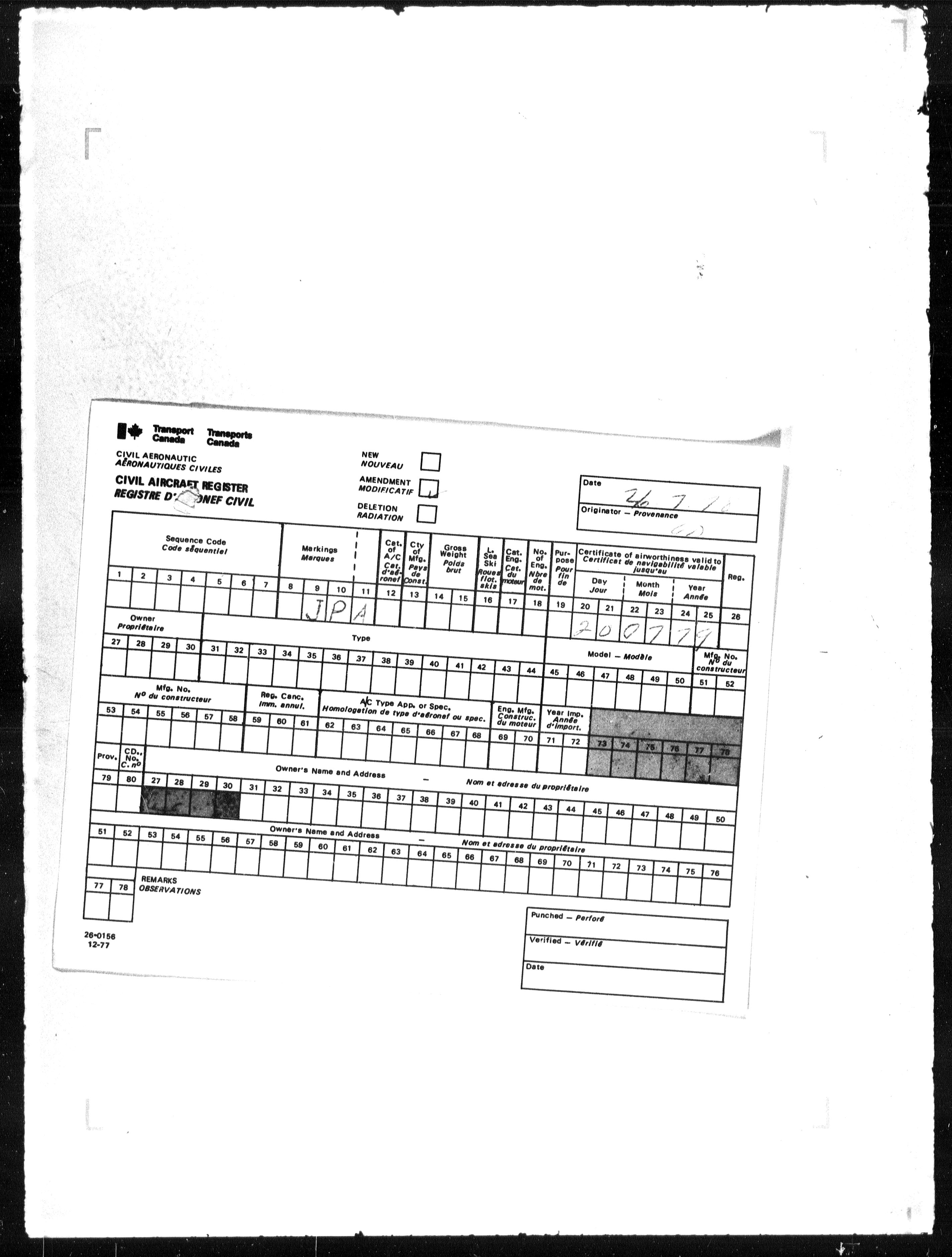 Department of Transport : Civil aircraft registration, inspection and operation files, block 5008, 1920-1986 - 7791