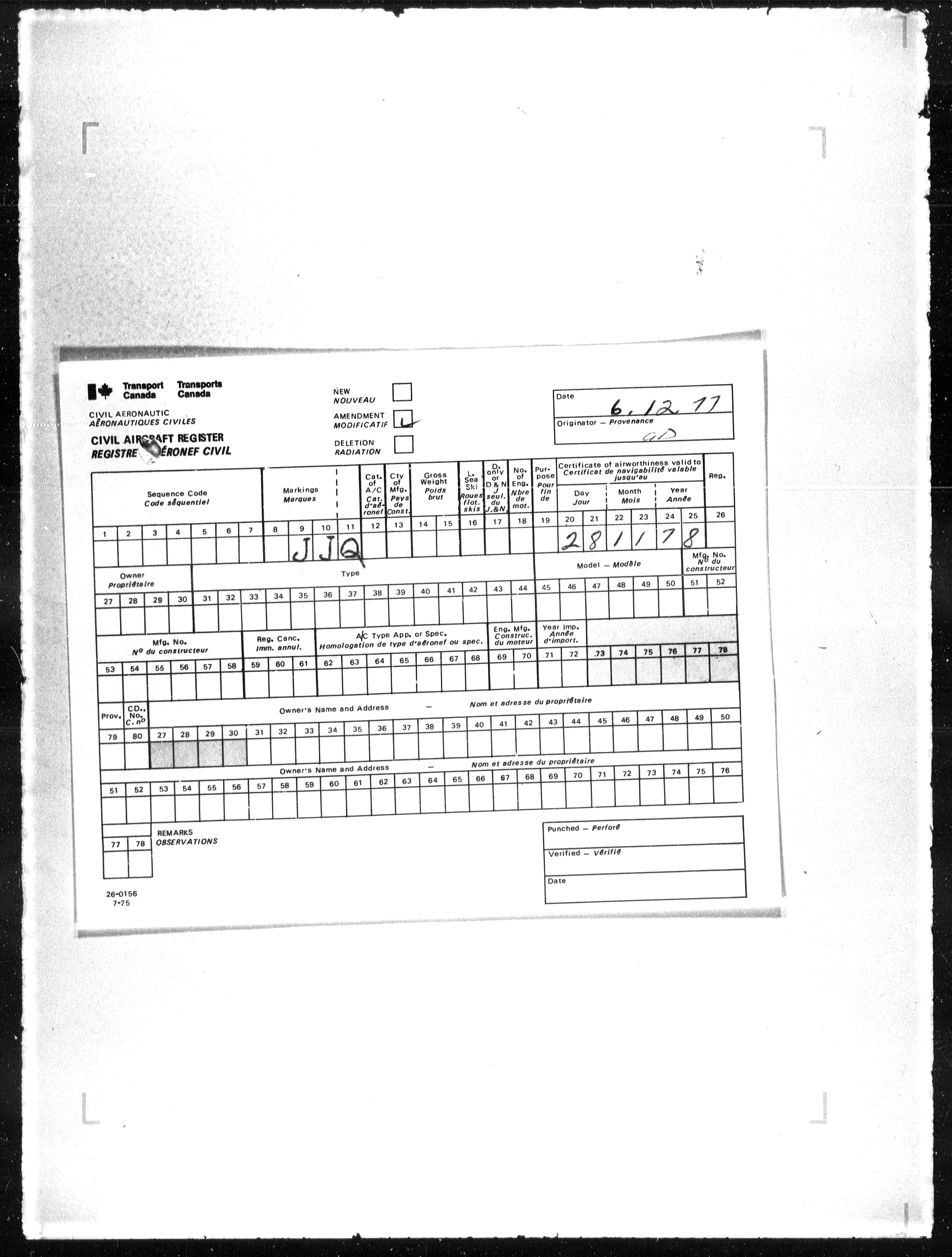 Department of Transport : Civil aircraft registration, inspection and operation files, block 5008, 1920-1986 - 7791