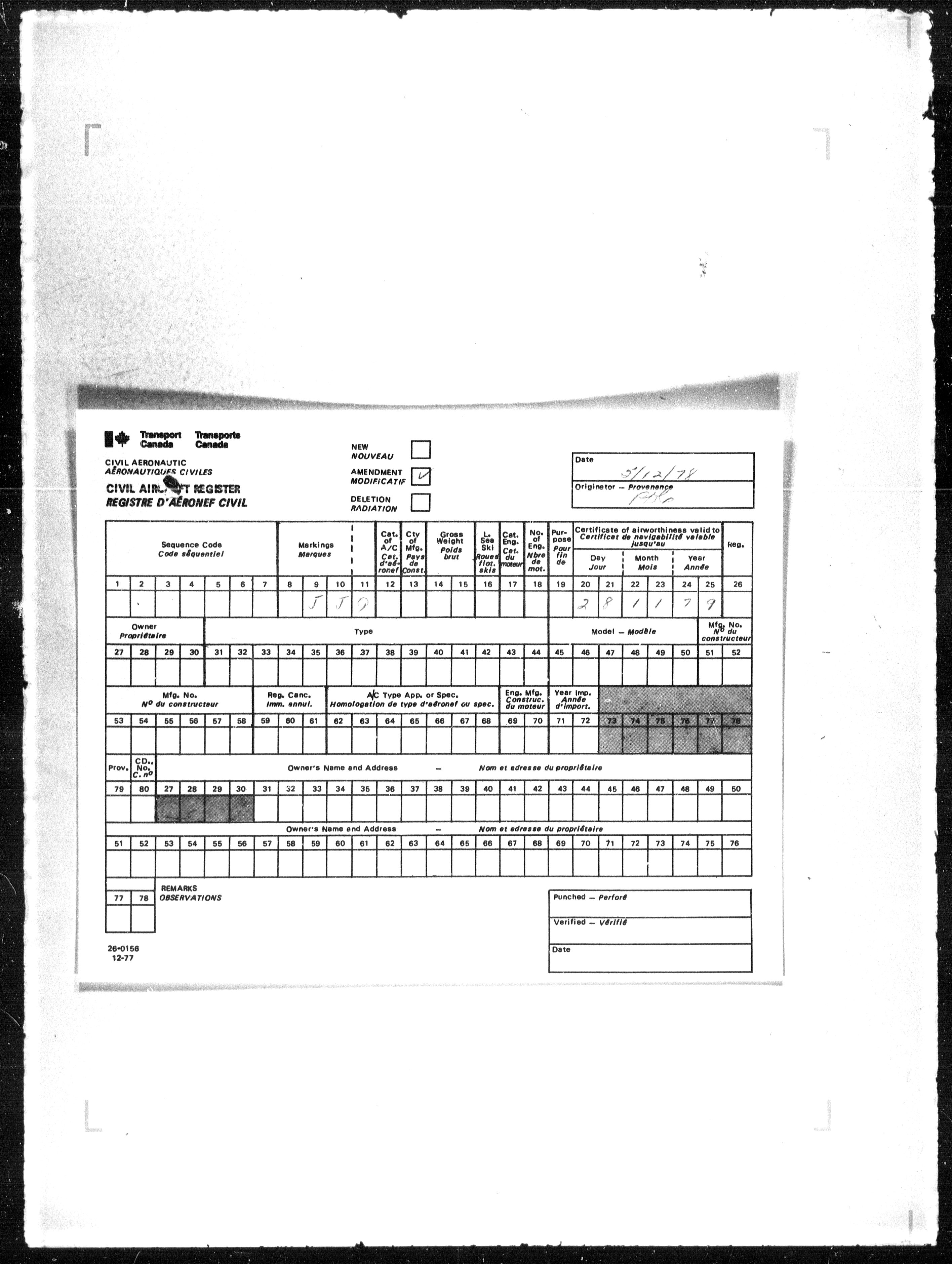 Department of Transport : Civil aircraft registration, inspection and operation files, block 5008, 1920-1986 - 7791