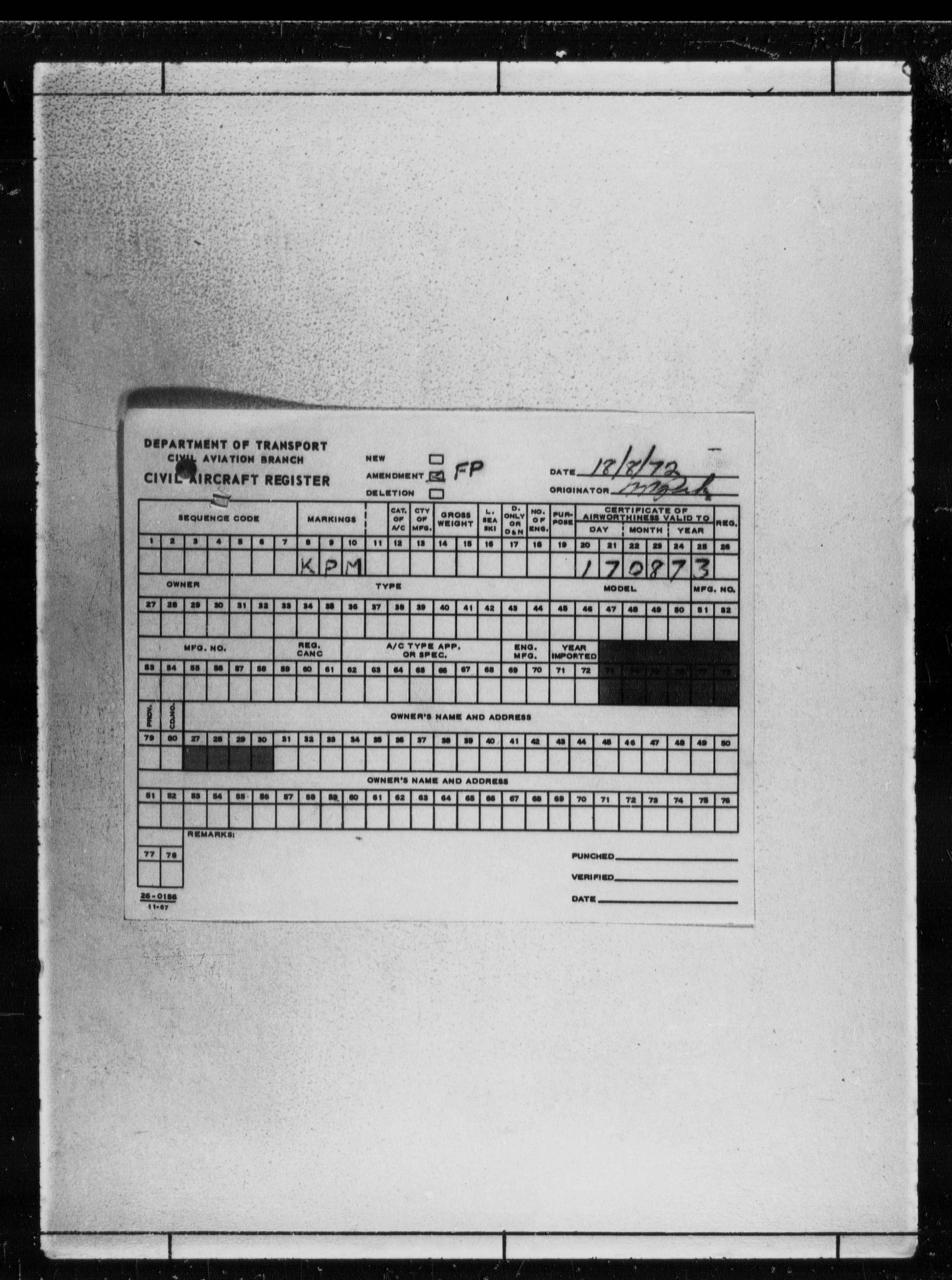 Department of Transport : Civil aircraft registration, inspection and operation files, block 5008, 1920-1986 - 7796