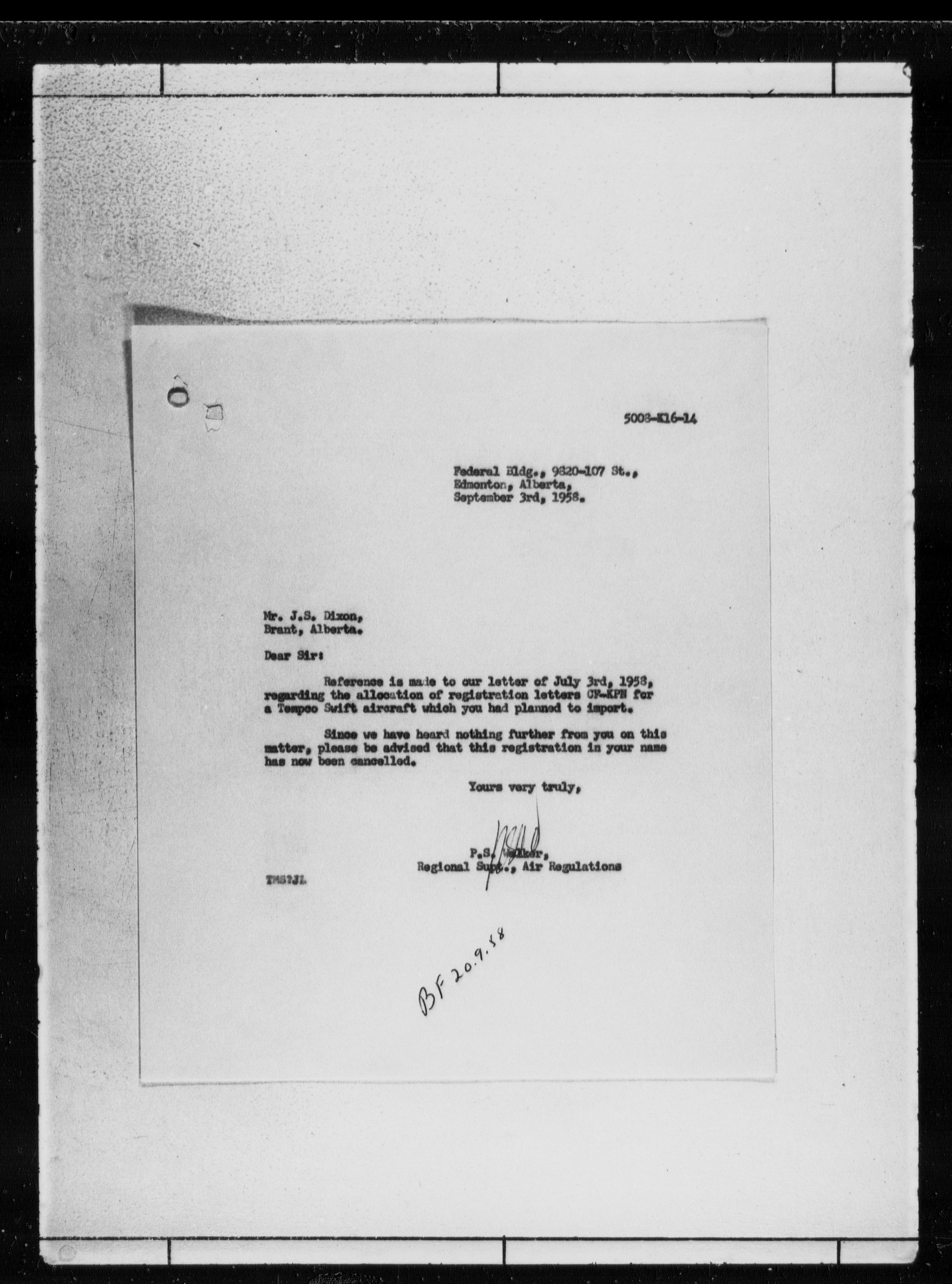 Department of Transport : Civil aircraft registration, inspection and operation files, block 5008, 1920-1986 - 7796