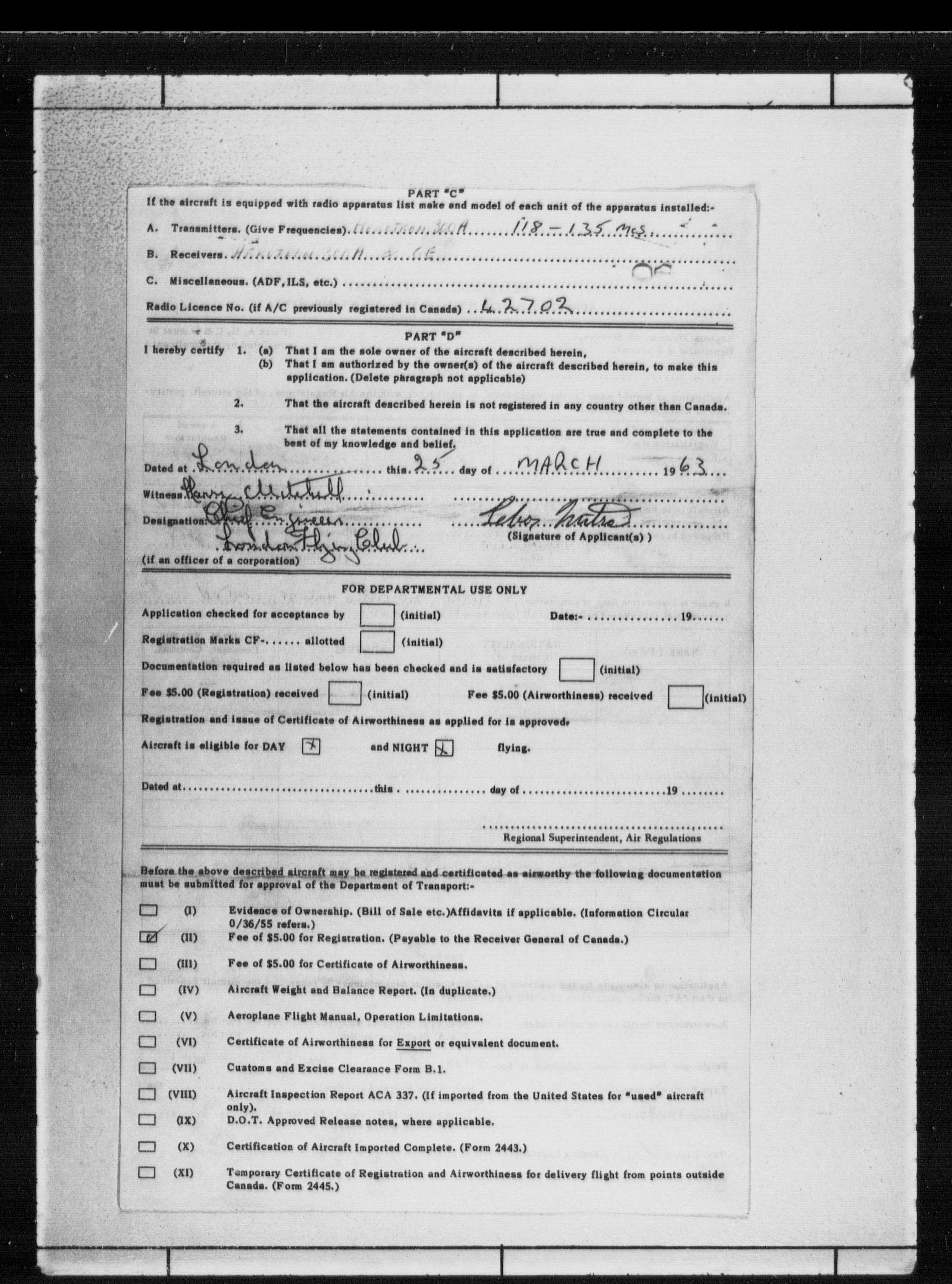 Department of Transport : Civil aircraft registration, inspection and operation files, block 5008, 1920-1986 - 7798