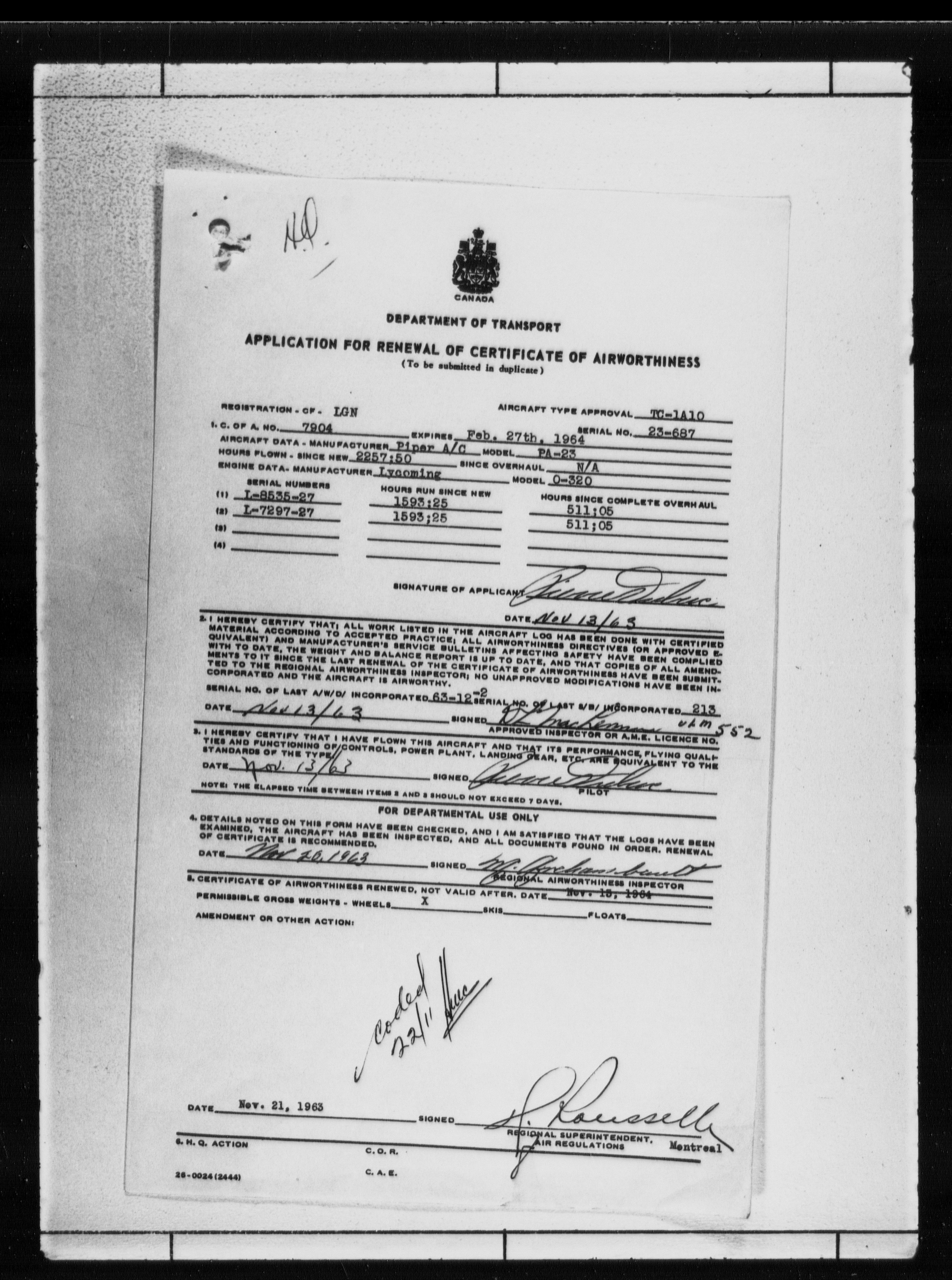 Department of Transport : Civil aircraft registration, inspection and operation files, block 5008, 1920-1986 - 7798