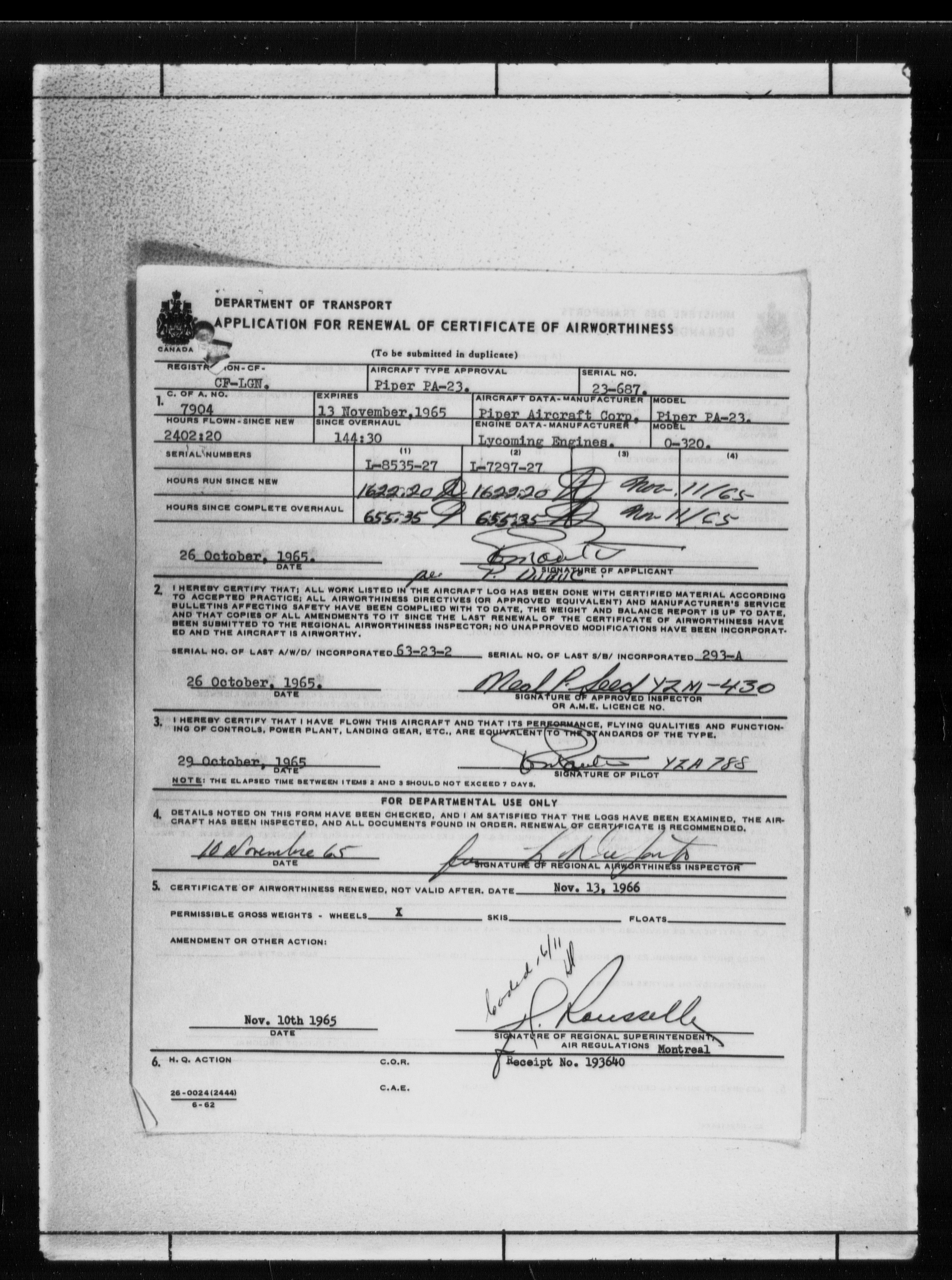 Department of Transport : Civil aircraft registration, inspection and operation files, block 5008, 1920-1986 - 7798
