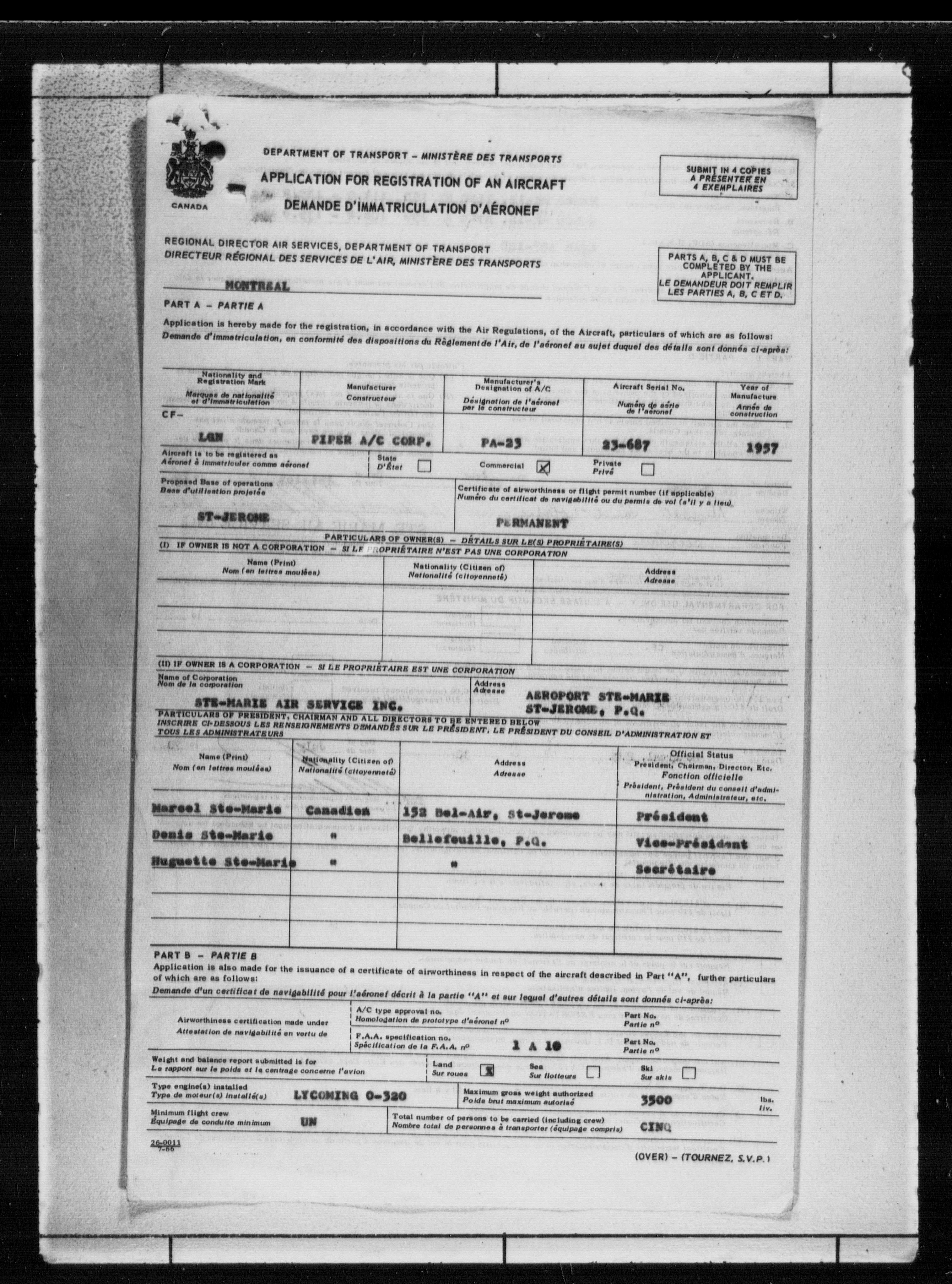 Department of Transport : Civil aircraft registration, inspection and operation files, 1920-1986 : T-7798
