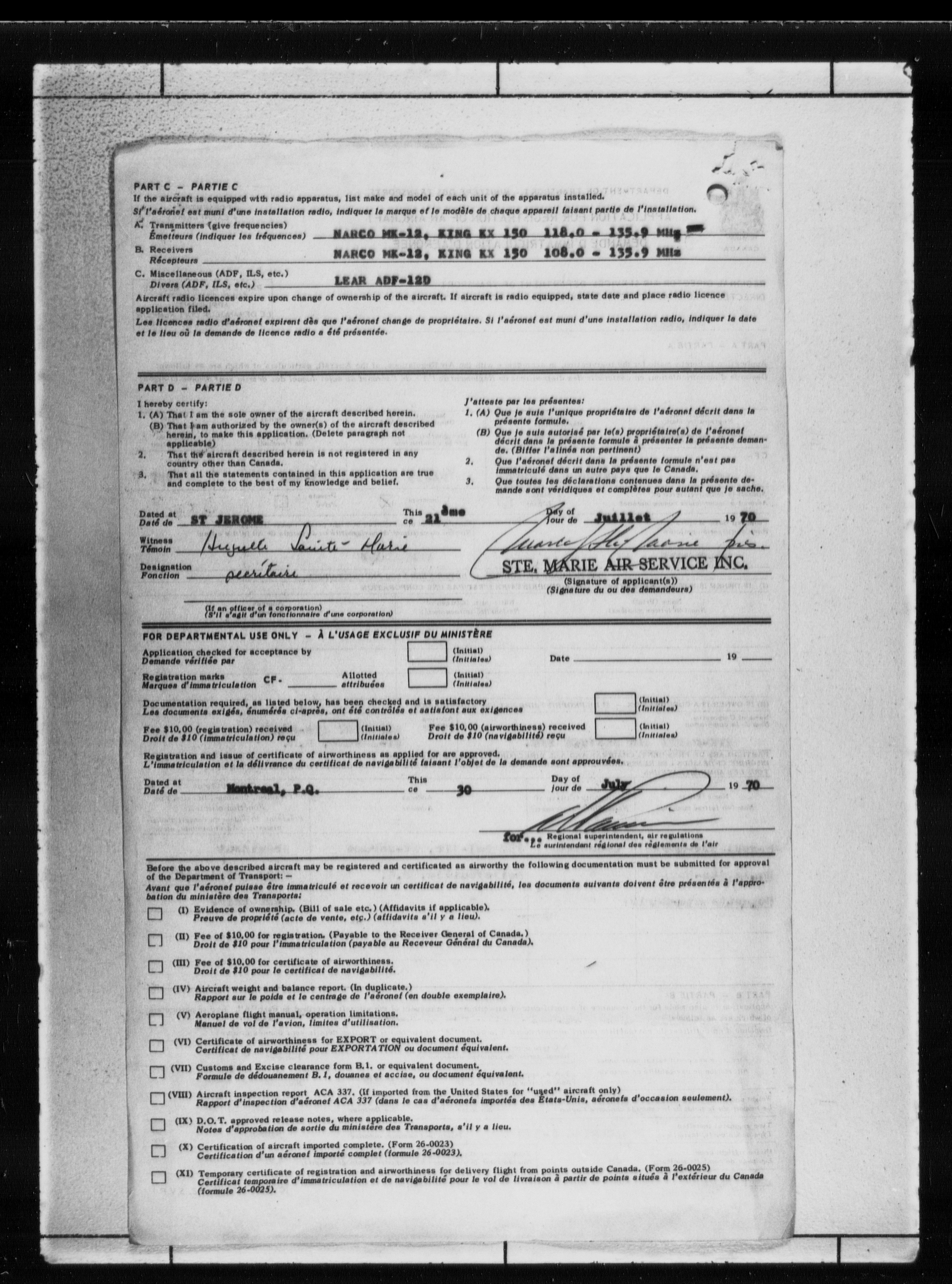 Department of Transport : Civil aircraft registration, inspection and operation files, block 5008, 1920-1986 - 7798