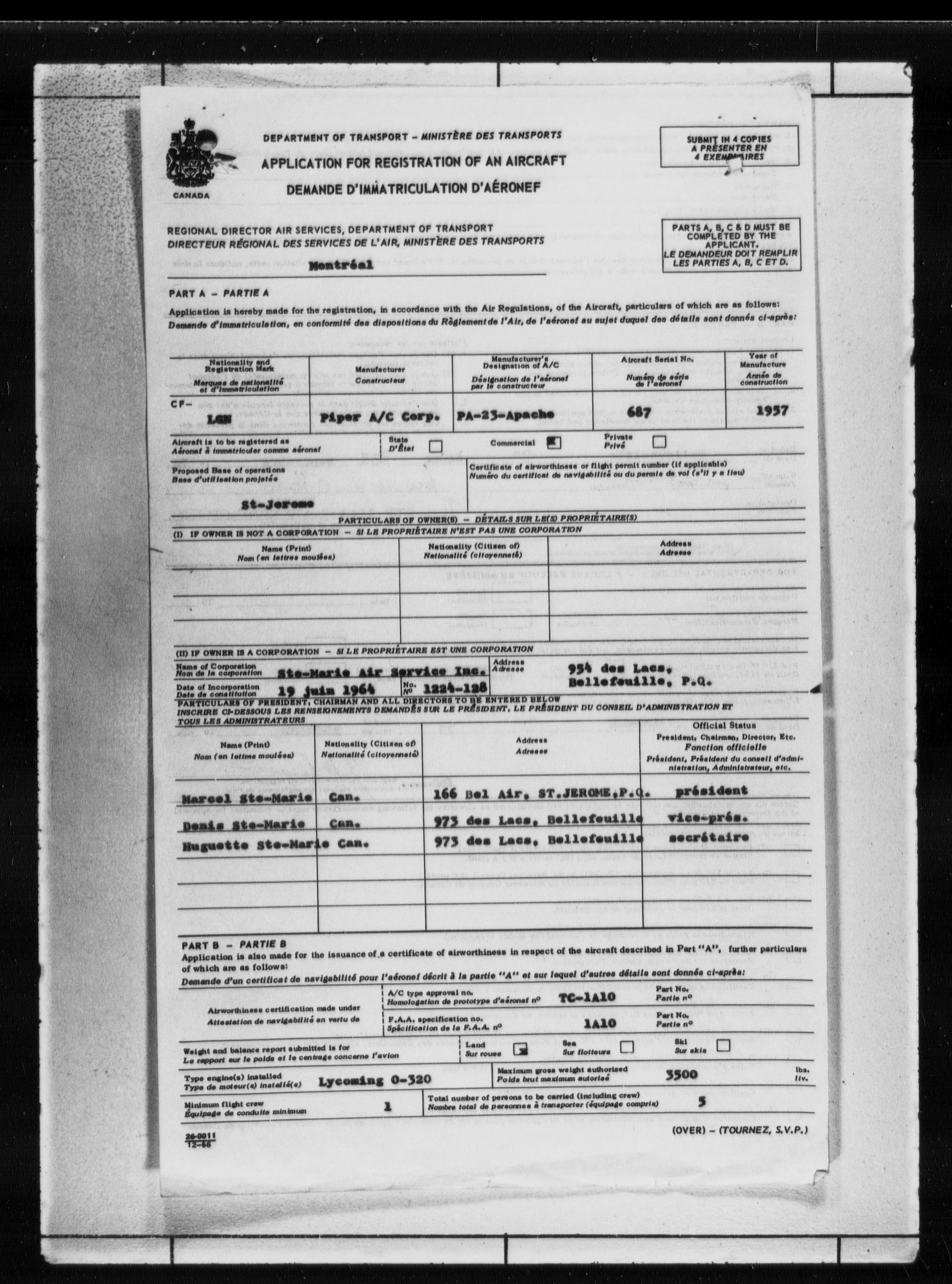 Department of Transport : Civil aircraft registration, inspection and operation files, block 5008, 1920-1986 - 7798
