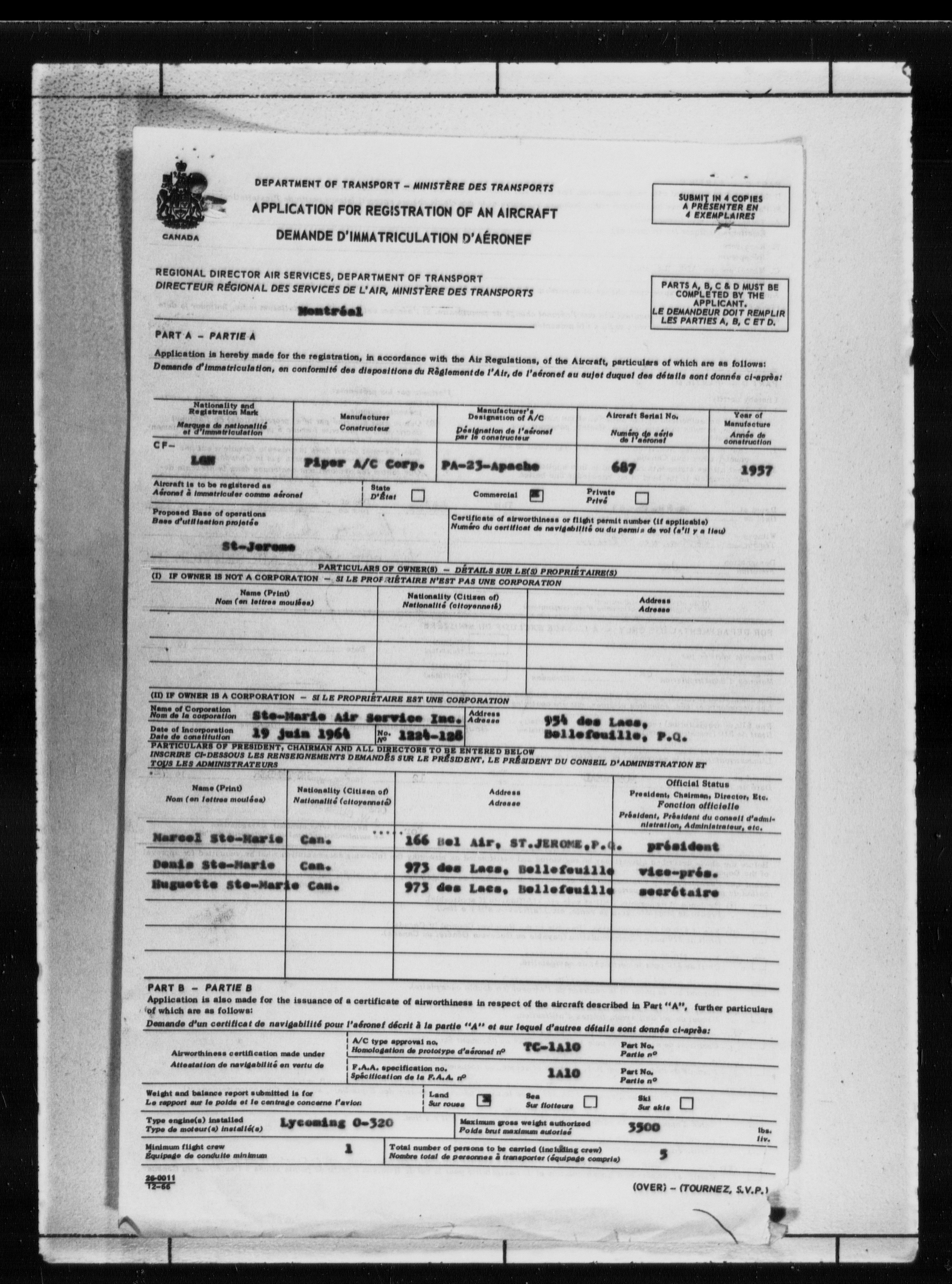 Department of Transport : Civil aircraft registration, inspection and operation files, block 5008, 1920-1986 - 7798