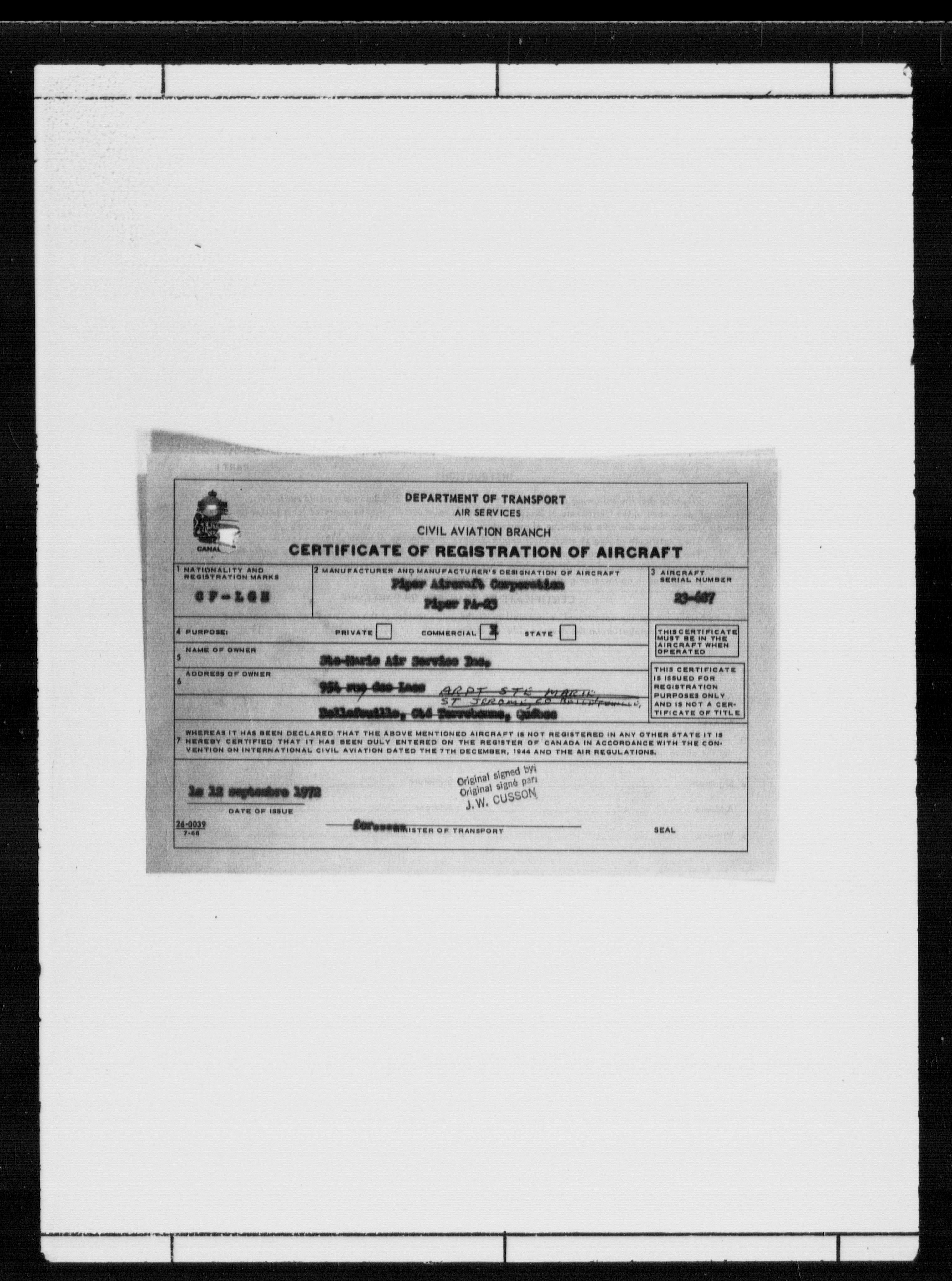 Department of Transport : Civil aircraft registration, inspection and operation files, block 5008, 1920-1986 - 7798