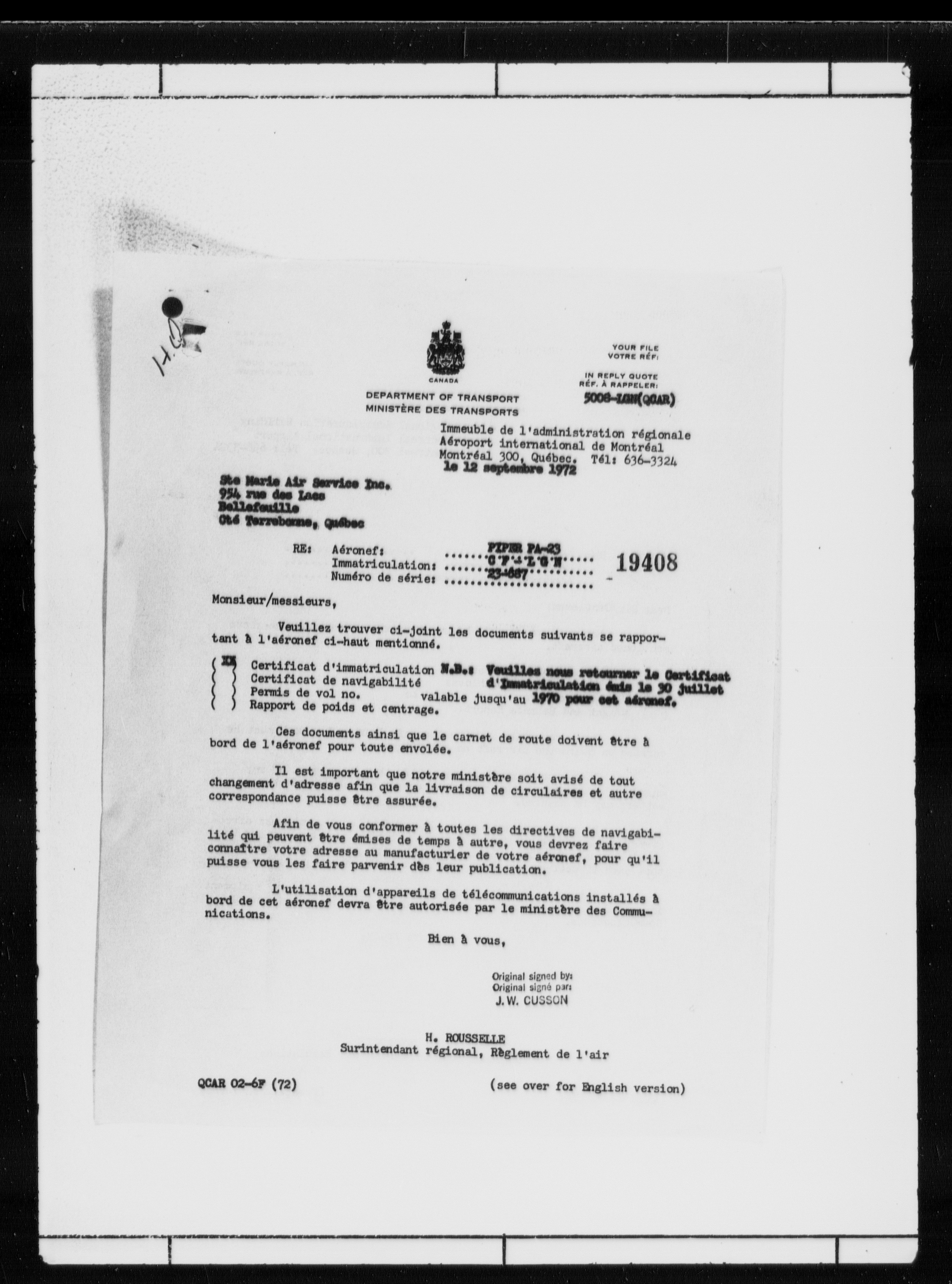 Department of Transport : Civil aircraft registration, inspection and operation files, block 5008, 1920-1986 - 7798