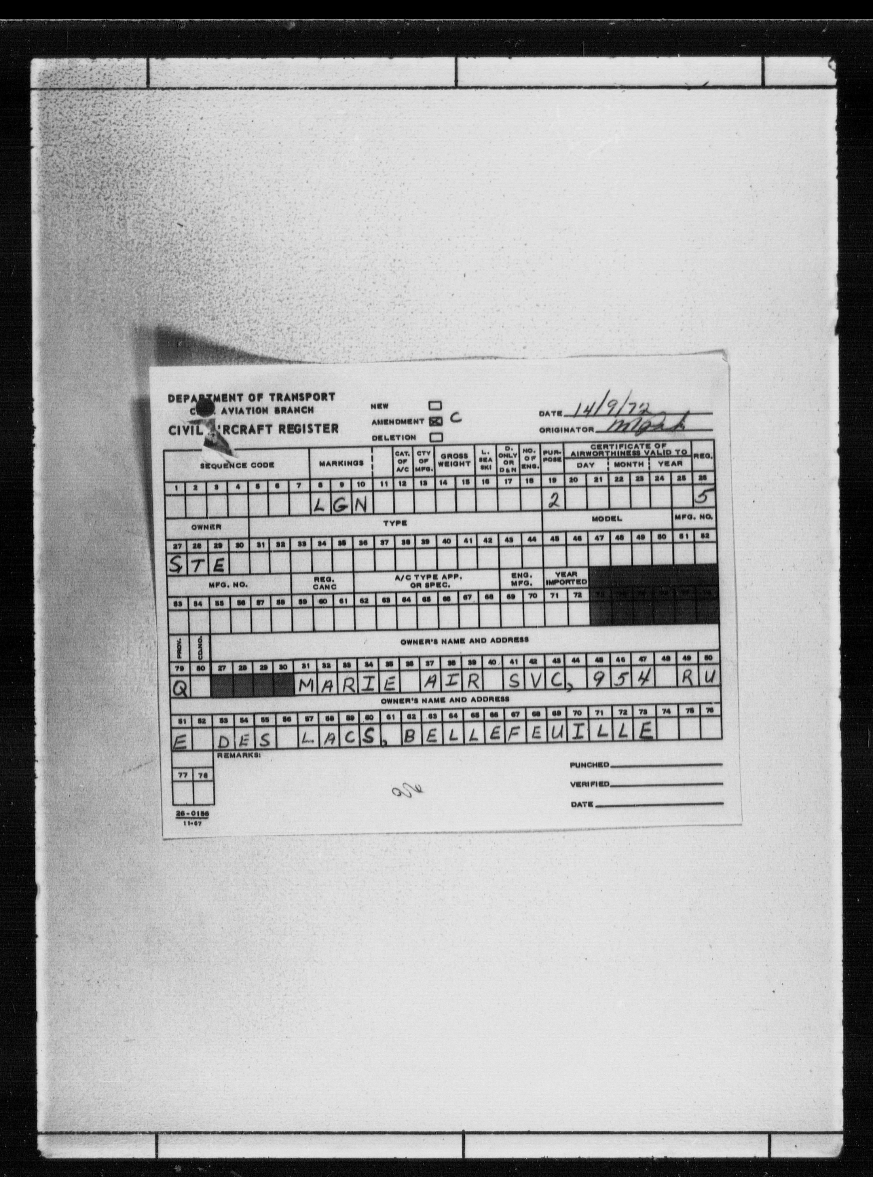 Department of Transport : Civil aircraft registration, inspection and operation files, block 5008, 1920-1986 - 7798