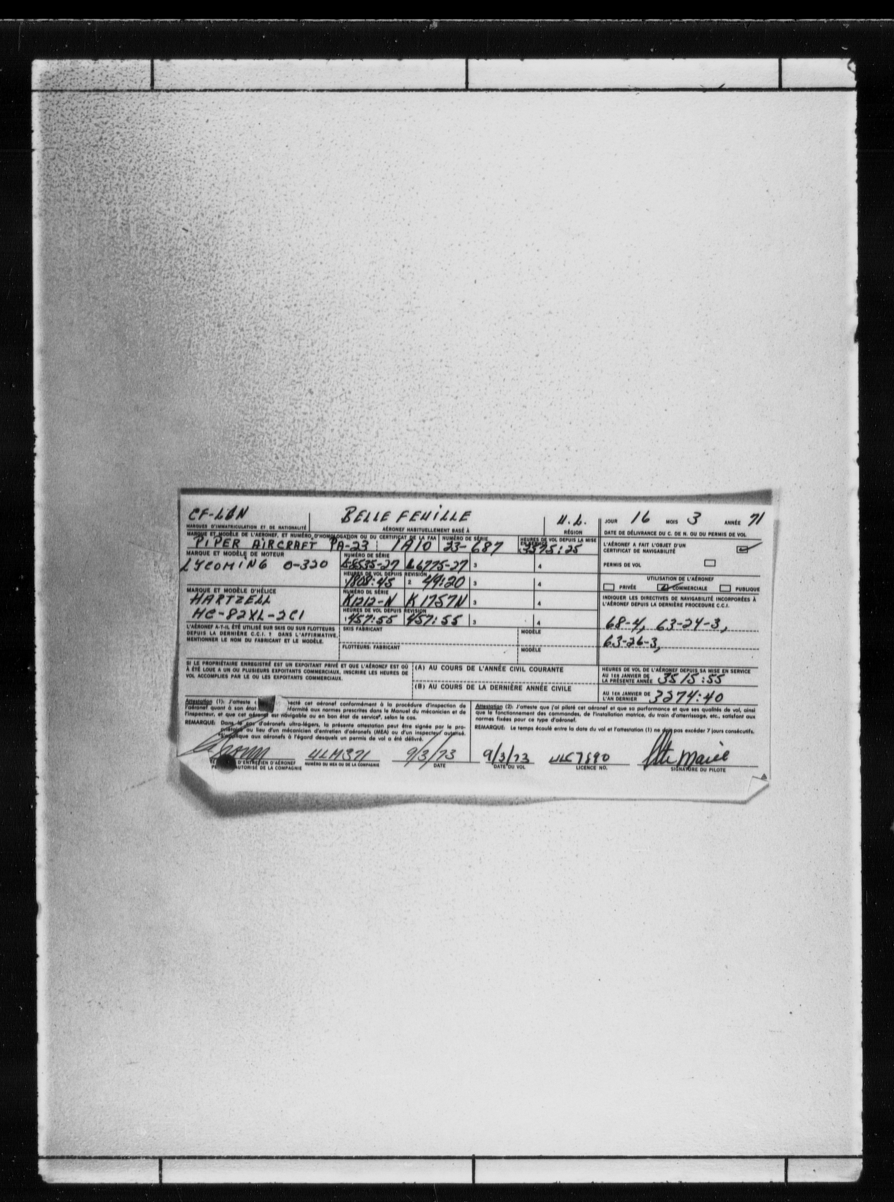 Department of Transport : Civil aircraft registration, inspection and operation files, block 5008, 1920-1986 - 7798
