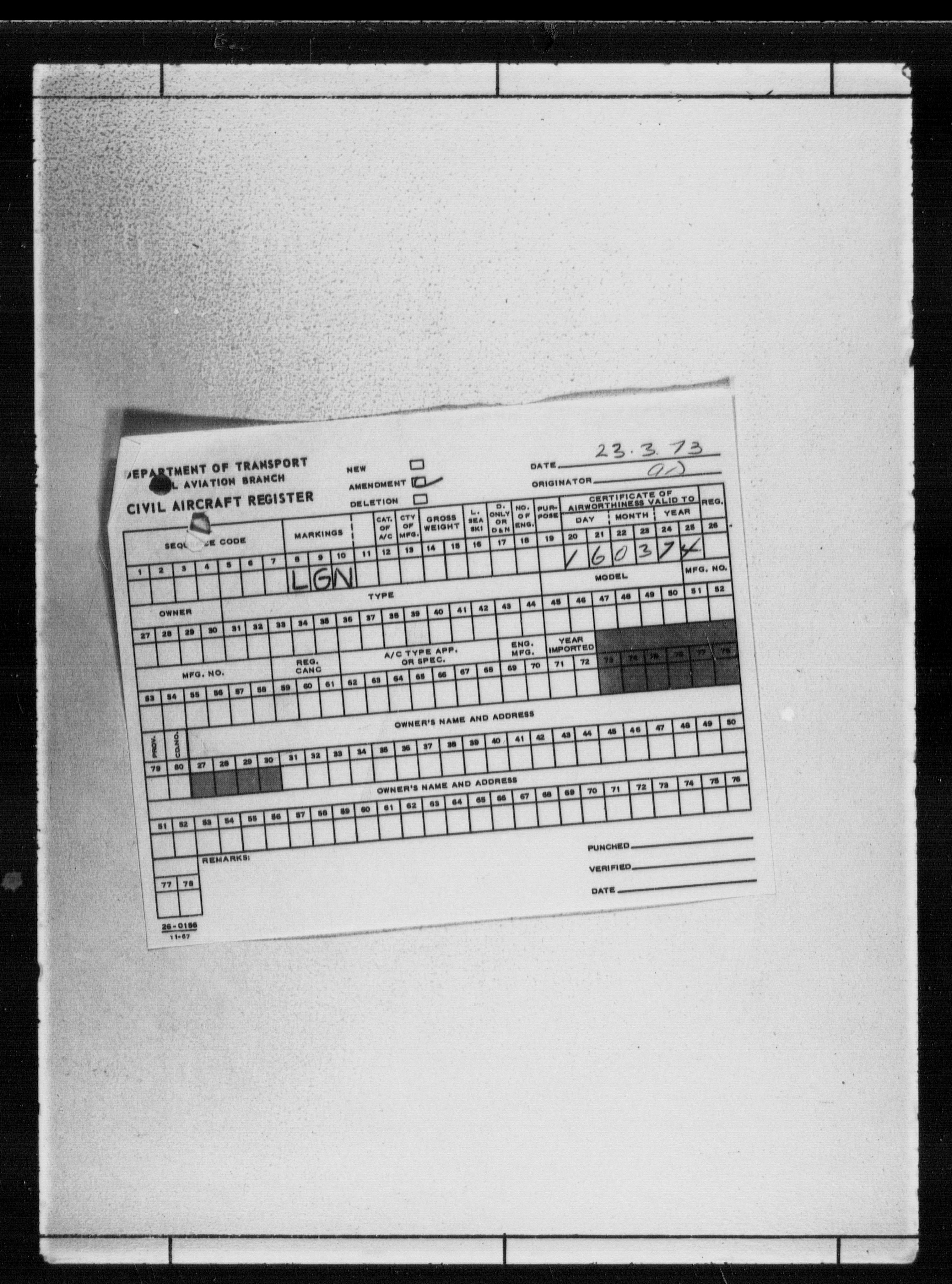 Department of Transport : Civil aircraft registration, inspection and operation files, block 5008, 1920-1986 - 7798