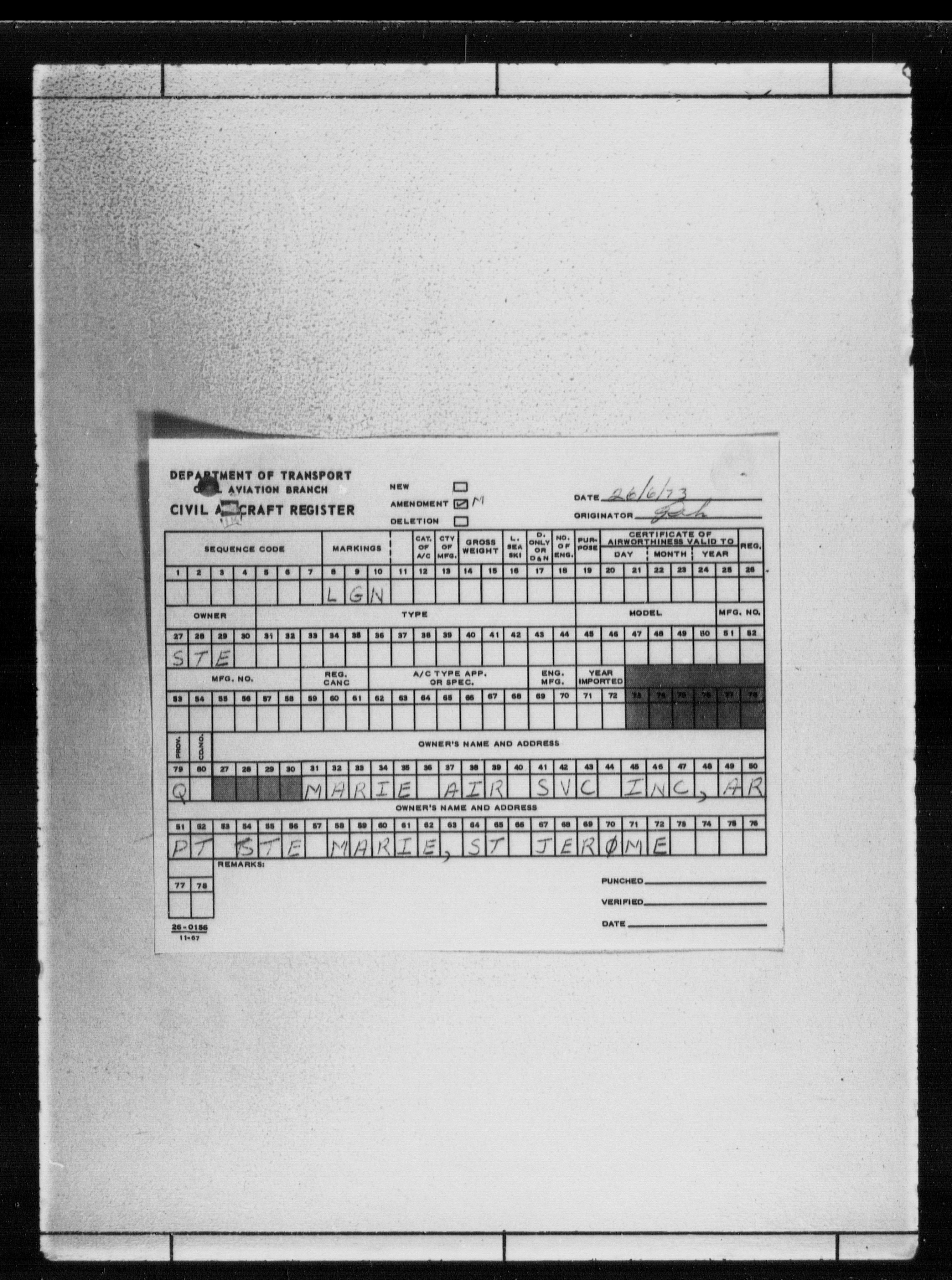 Department of Transport : Civil aircraft registration, inspection and operation files, block 5008, 1920-1986 - 7798