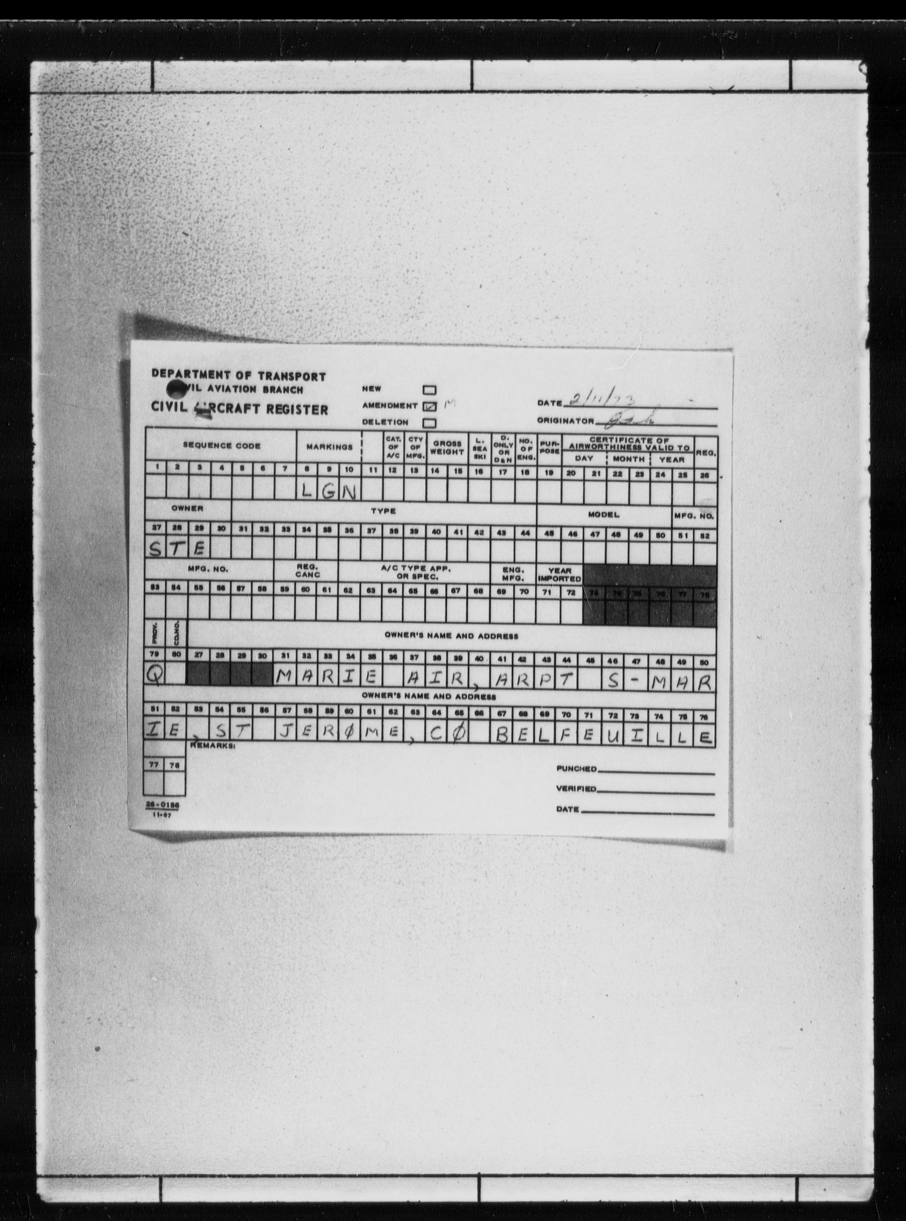 Department of Transport : Civil aircraft registration, inspection and operation files, block 5008, 1920-1986 - 7798