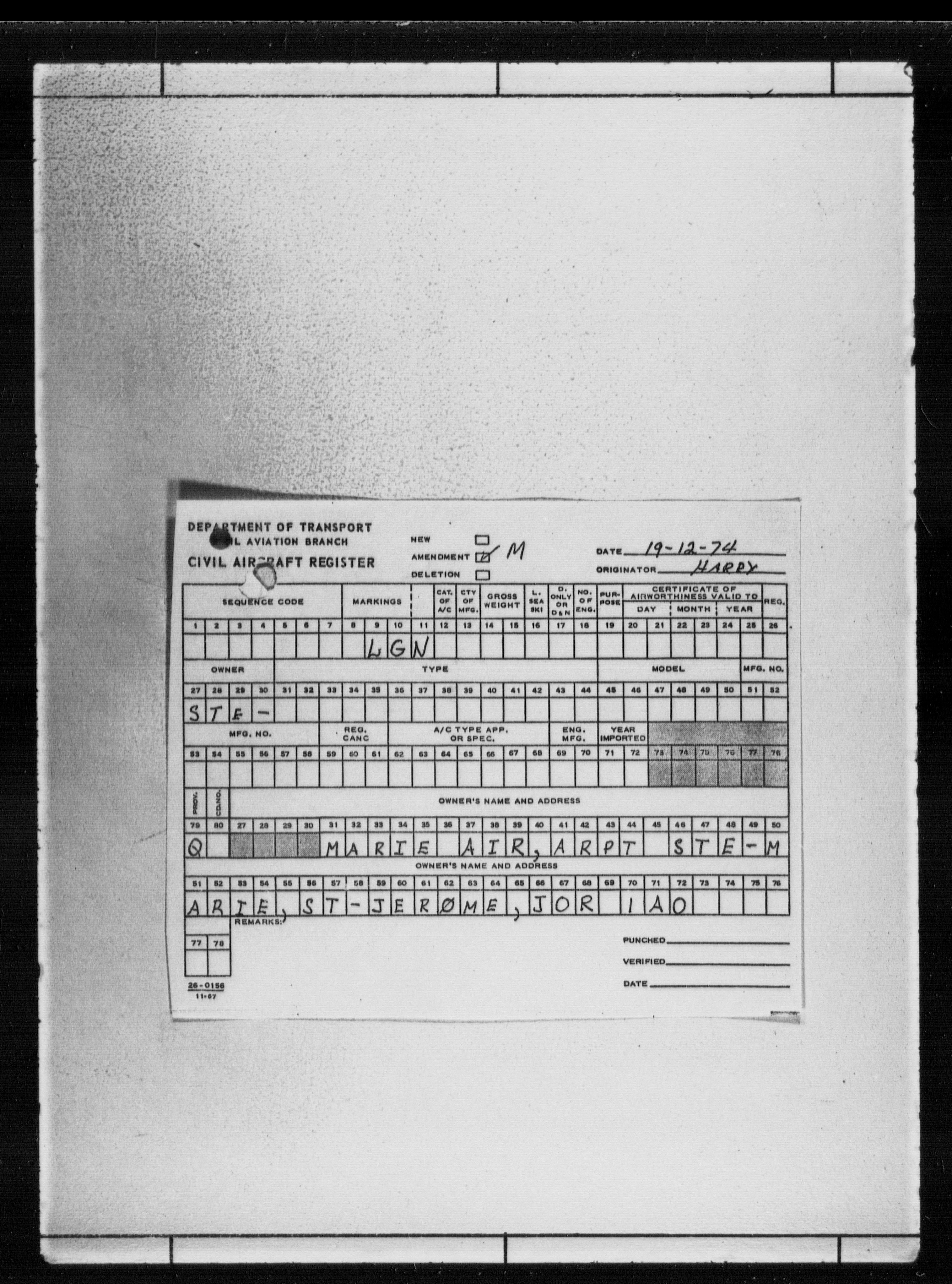 Department of Transport : Civil aircraft registration, inspection and operation files, block 5008, 1920-1986 - 7798