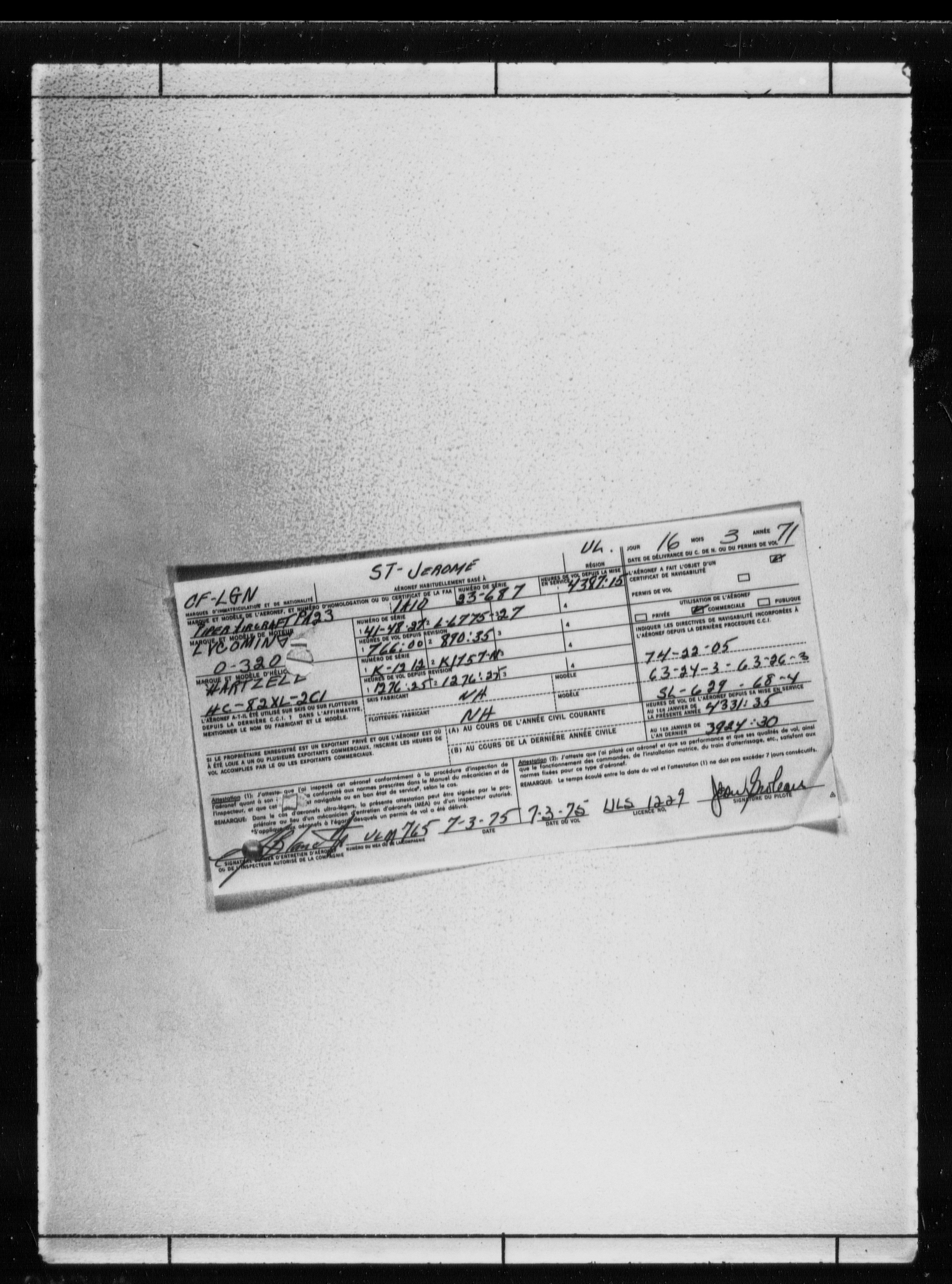 Department of Transport : Civil aircraft registration, inspection and operation files, block 5008, 1920-1986 - 7798