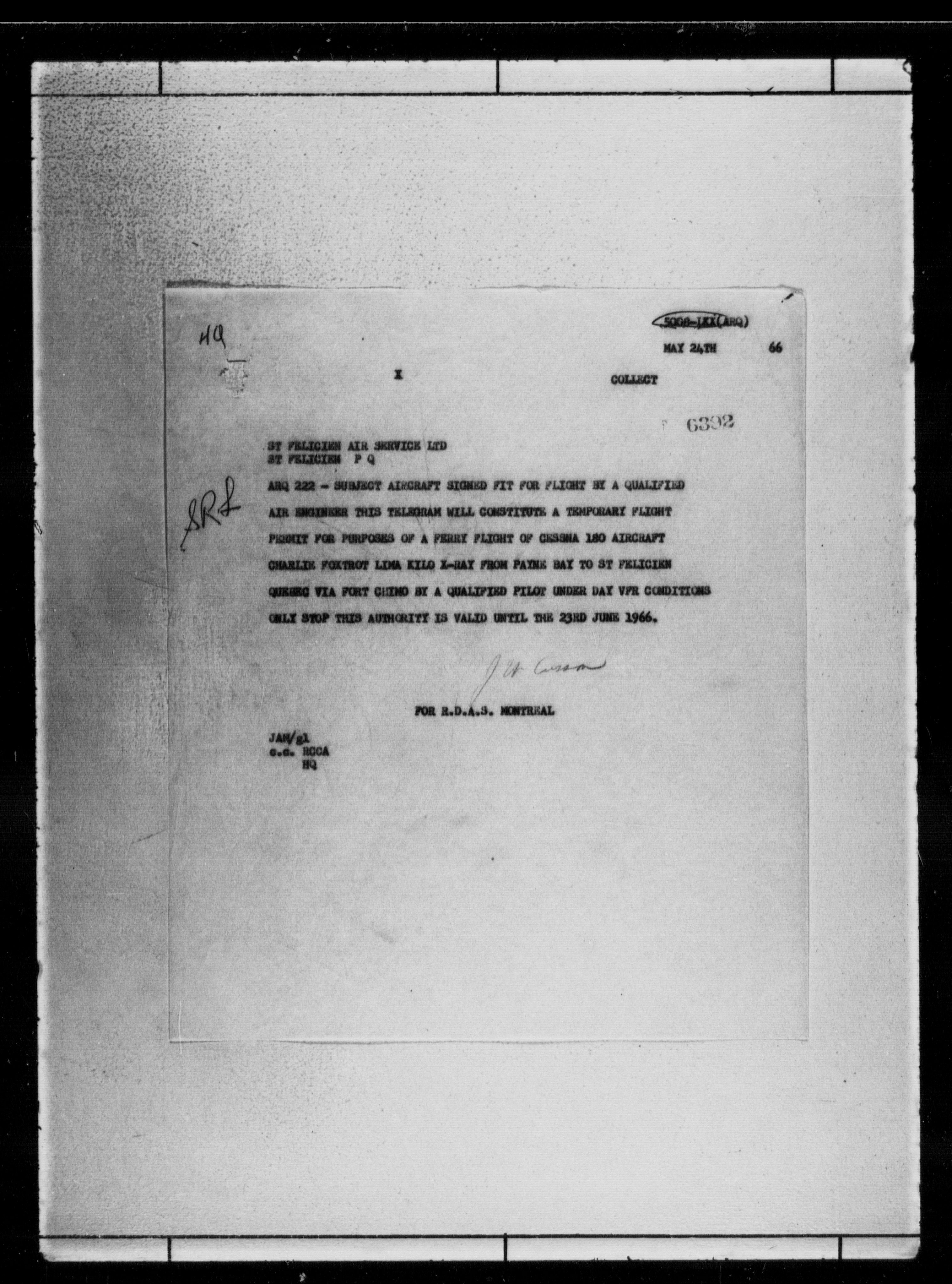 Department of Transport : Civil aircraft registration, inspection and operation files, block 5008, 1920-1986 - 7799