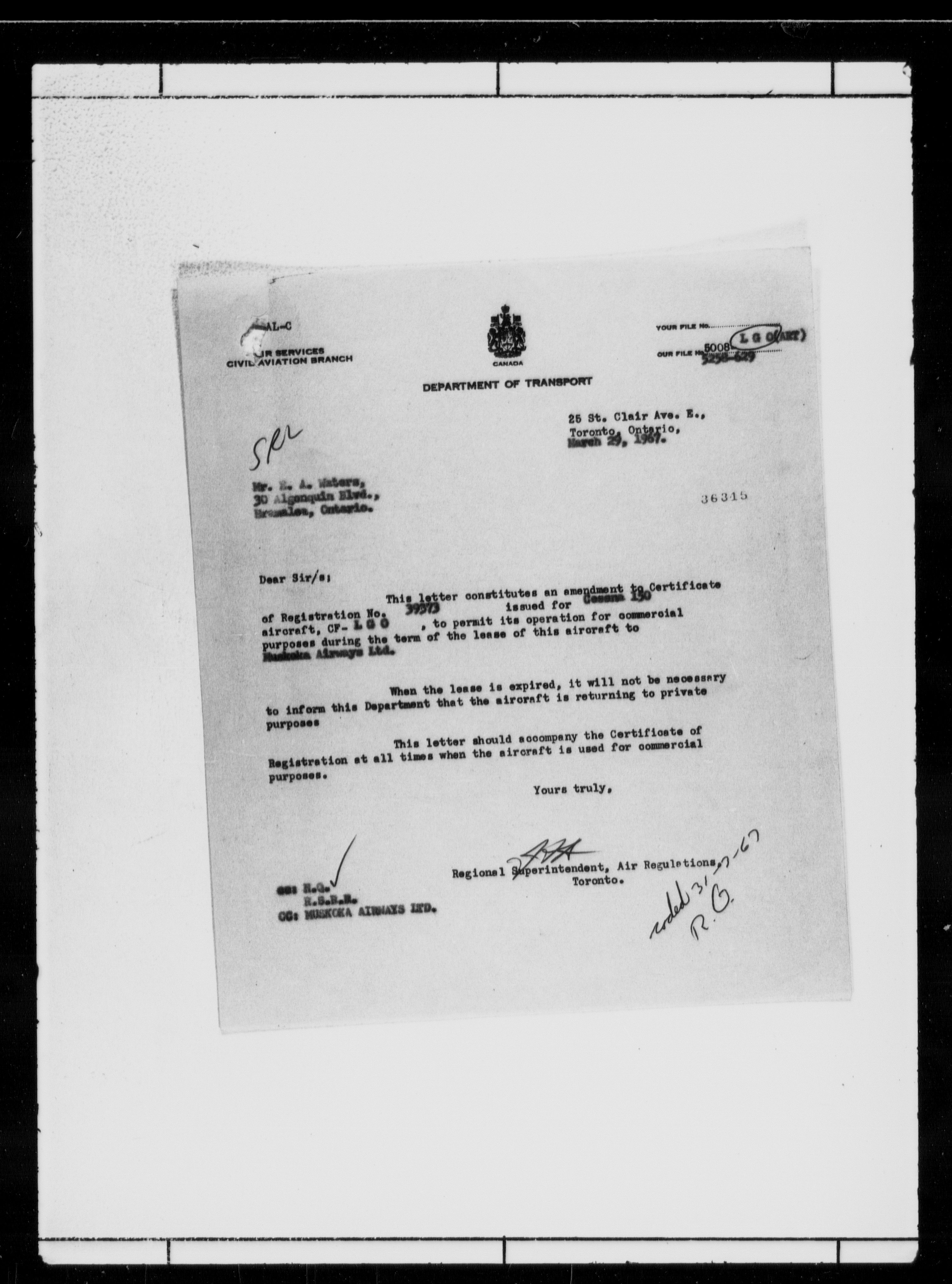 Department of Transport : Civil aircraft registration, inspection and operation files, block 5008, 1920-1986 - 7799