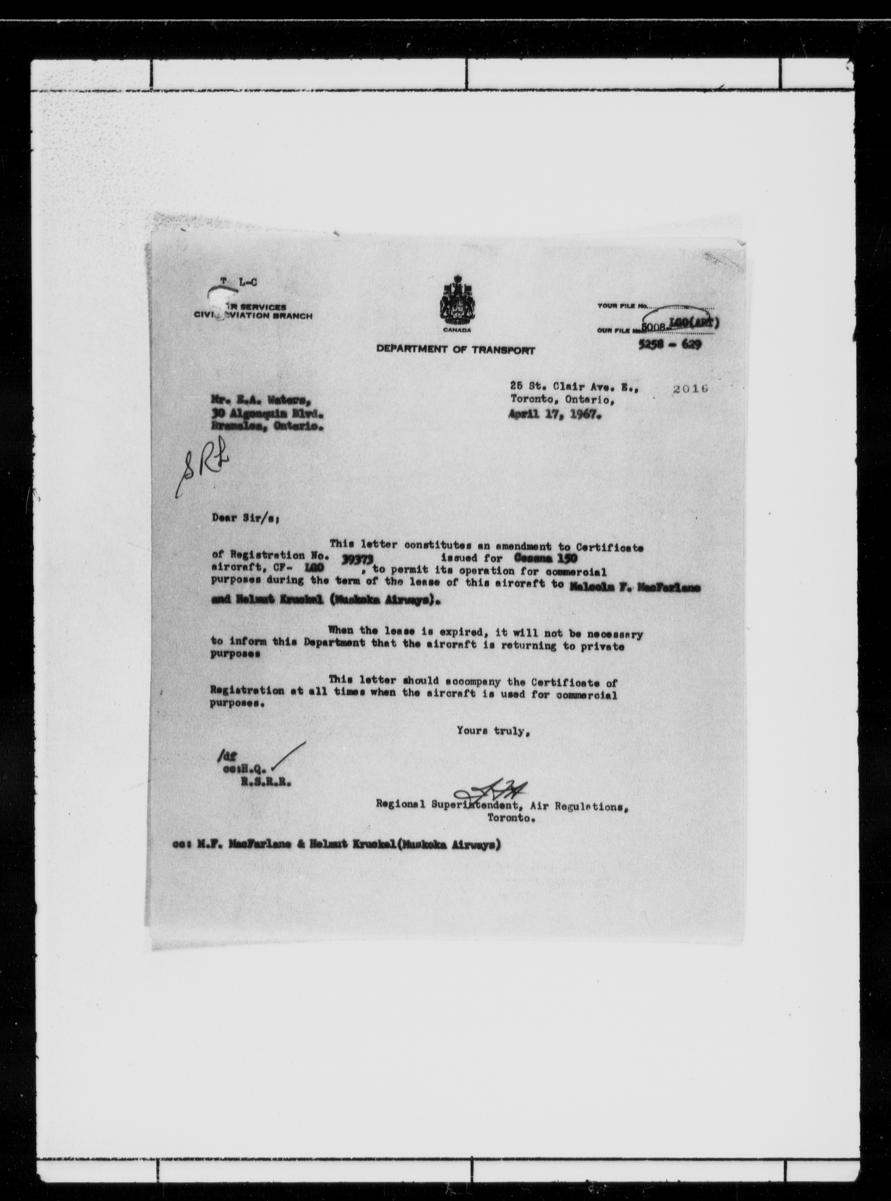 Department of Transport : Civil aircraft registration, inspection and operation files, block 5008, 1920-1986 - 7799